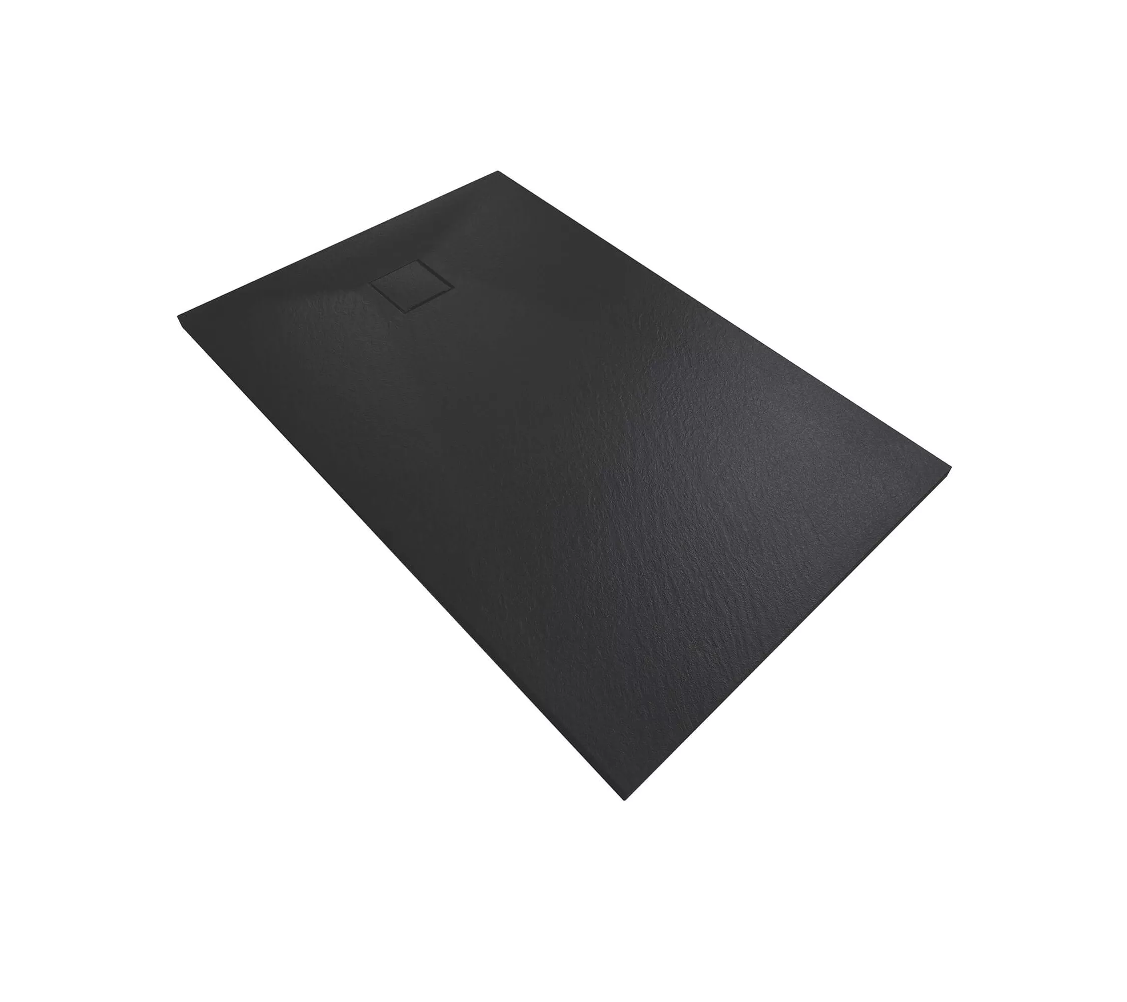 Поддон для душа черного цвета, прямоугольный из стеклопластика с уклоном под слив. Представляет собой единую плиту из стеклопластика с отверстием для сифона.