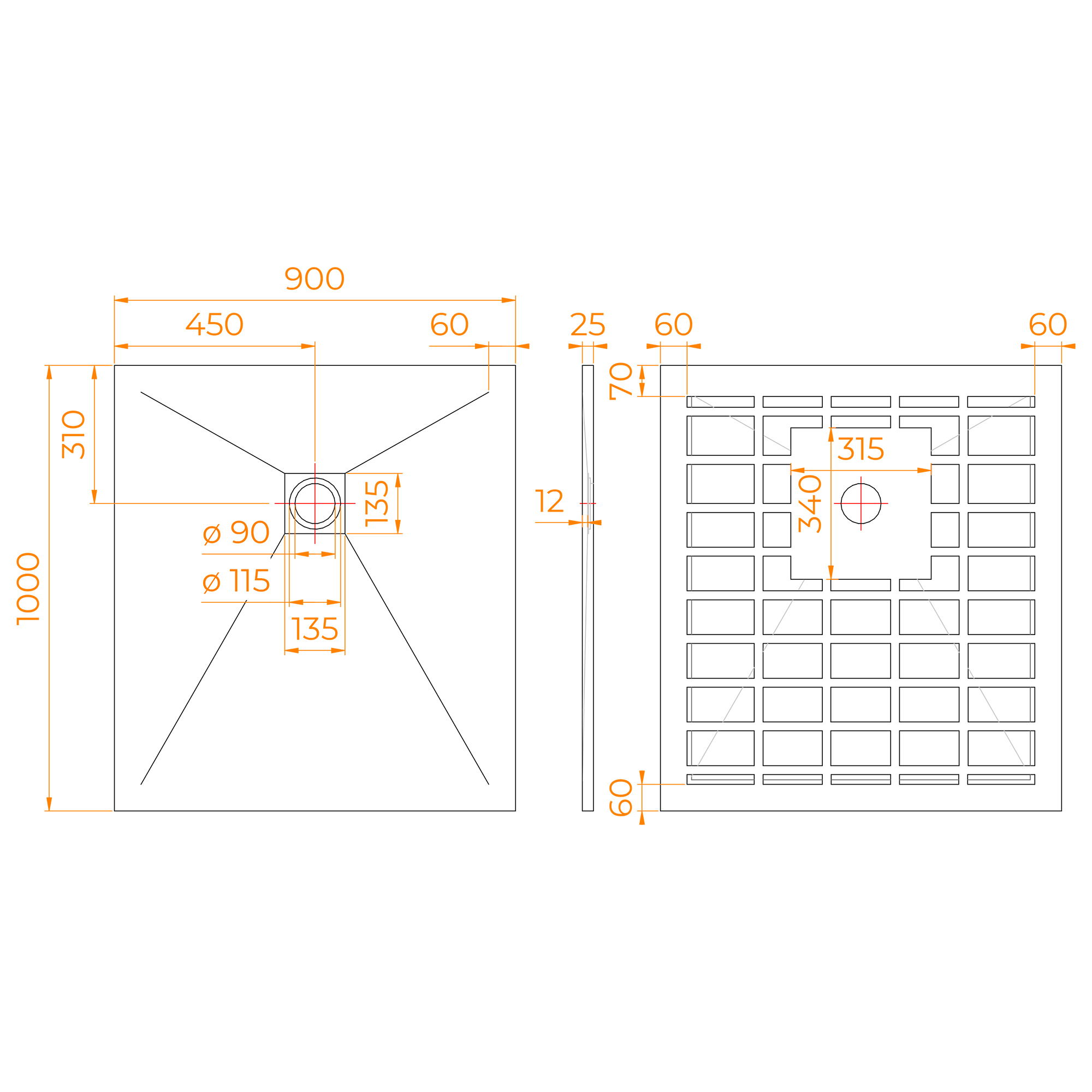 Искусственный камень — это композитный материал, в составе которого полимерная смола и мраморная крошка. Поверхность поддона покрыта специальным Гелькоутом, который придает изделию стойкость к механическим повреждениям и агрессивным средам, а также обеспечивает долговечность.Антискользящая поверхность поддона имитирует натуральный камень и выдерживает нагрузку до 300 кг, что гарантирует безопасность при использовании.Разнообразие форм: поддоны доступны в конфигурациях квадрат, полукруг, прямоугольник и трапеция (пятиугольные), что позволяет выбрать подходящий вариант для вашего интерьера.Широкий размерный ряд: от 800x800 мм с шагом в 10 см до максимального размера 900x1200 мм, что дает возможность подобрать оптимальный поддон для вашей ванной комнаты.