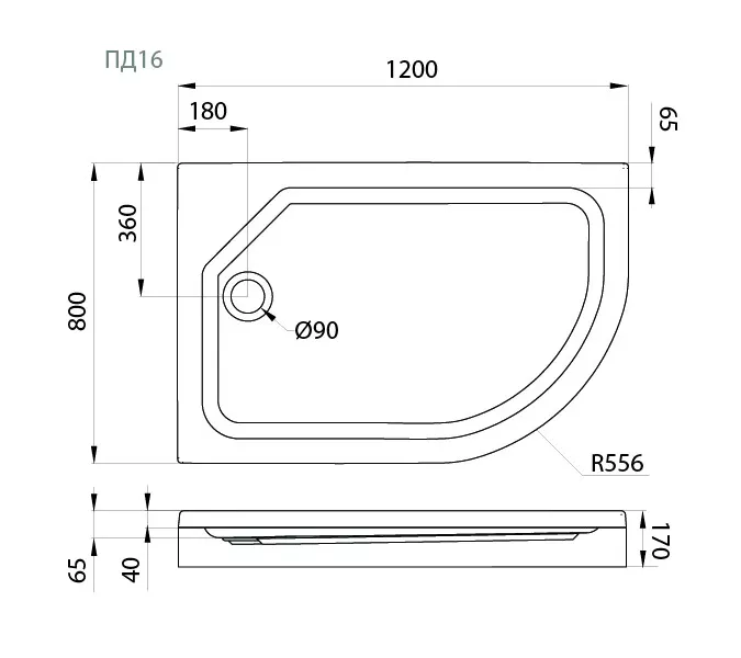Поддон душевой Triton ПД16/ПД17 120х80 асимметричный L/R низкий