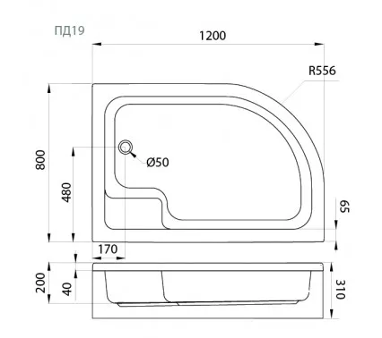 Поддон душевой Triton ПД18/ПД19 , 120х80 асимметричный L/R средний