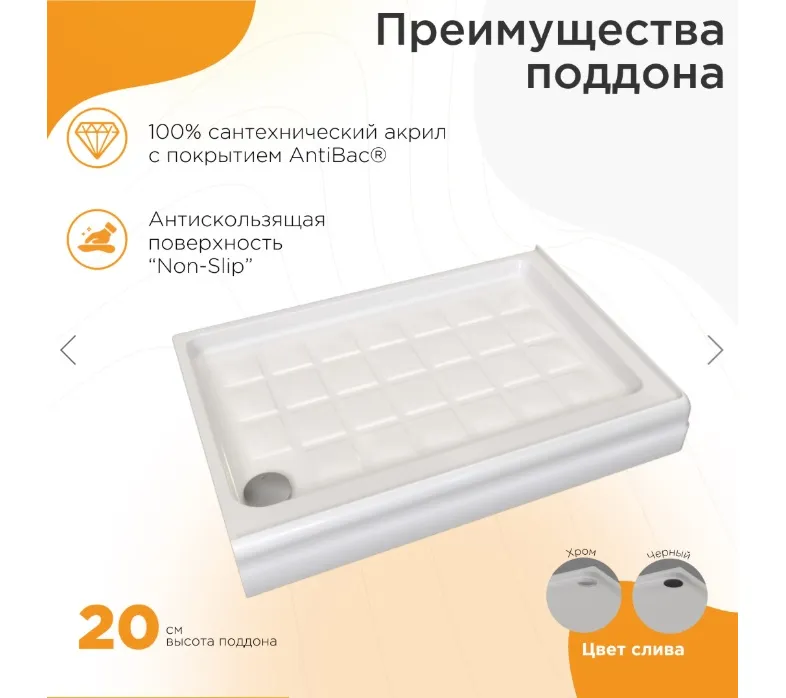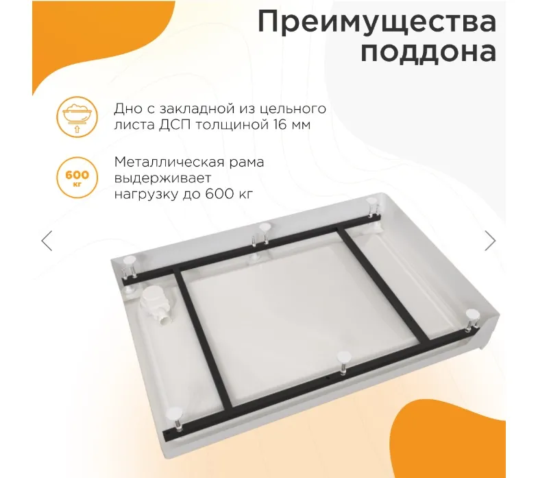 Левое / право исполнение, поддон на раме-подставке с устройством слива.