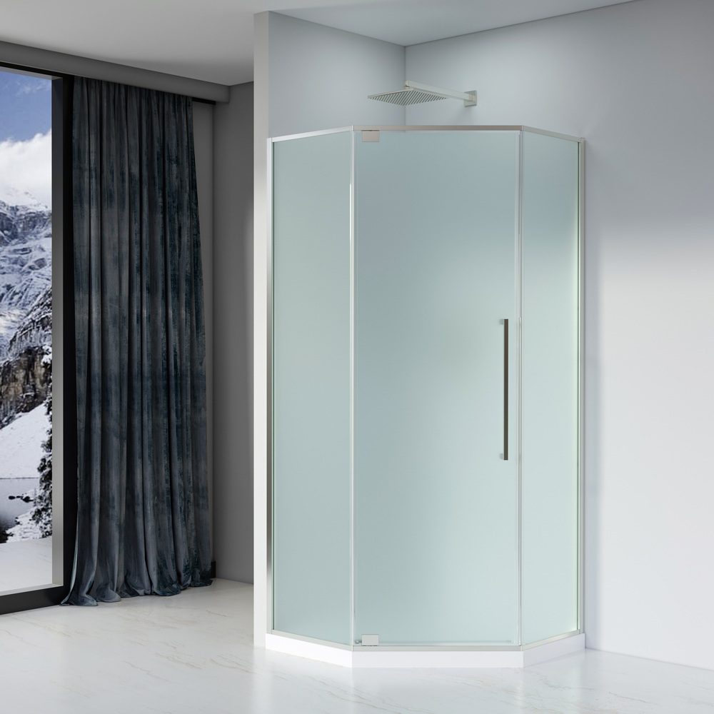 • Закаленное стекло, матовое• Хромированный, анодированный алюминиевый профиль• Хромированные петли вверху и внизу• Толщина стекла 6 мм• Распашная дверь• Допуск на установку 15 мм с каждой стороны• Металлическая ручка • Реверсивная модель • Anti-Dribble Protection Анти-капельное покрытие