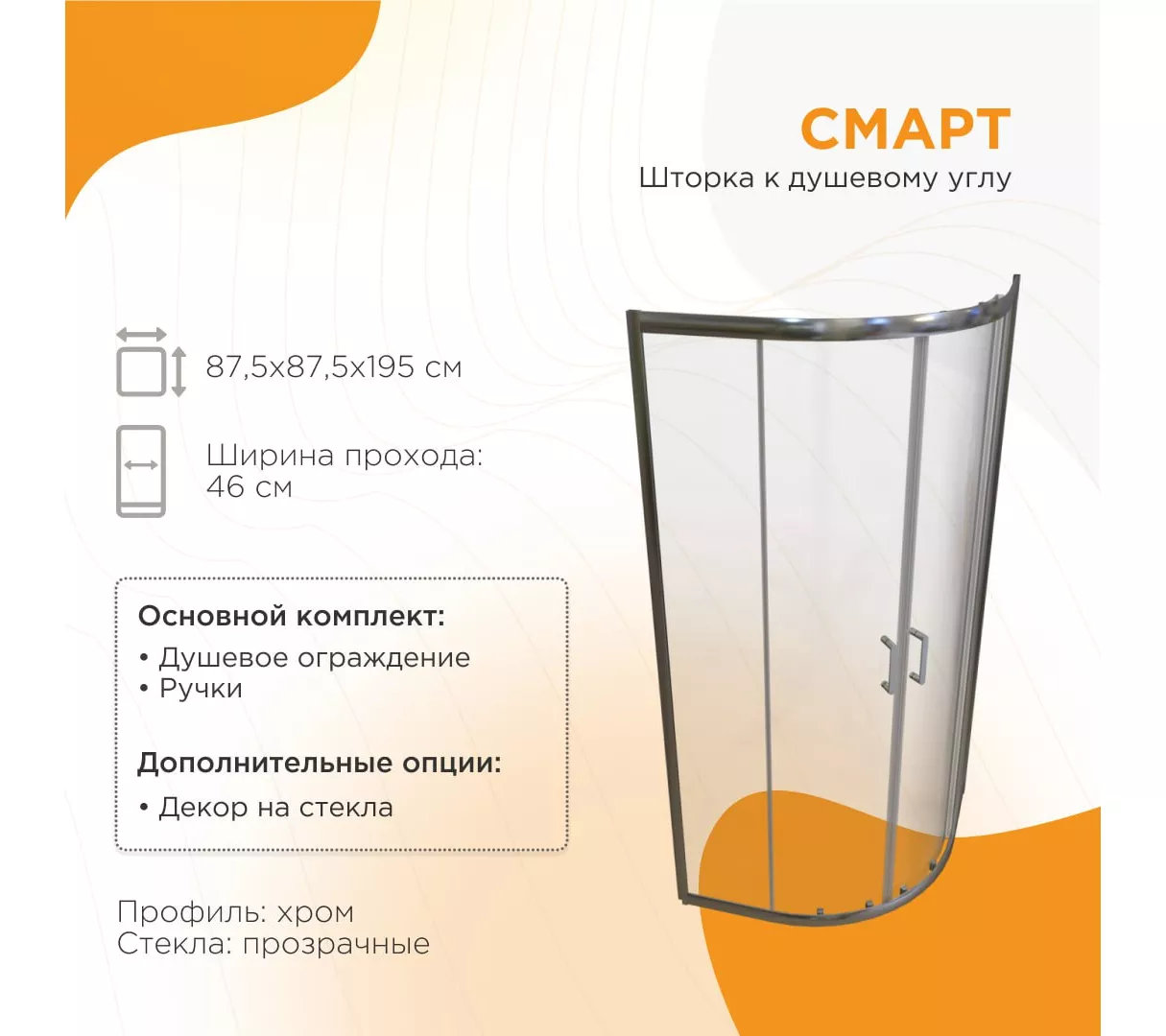 Душевое ограждение Radomir Смарт 90х90 без поддона