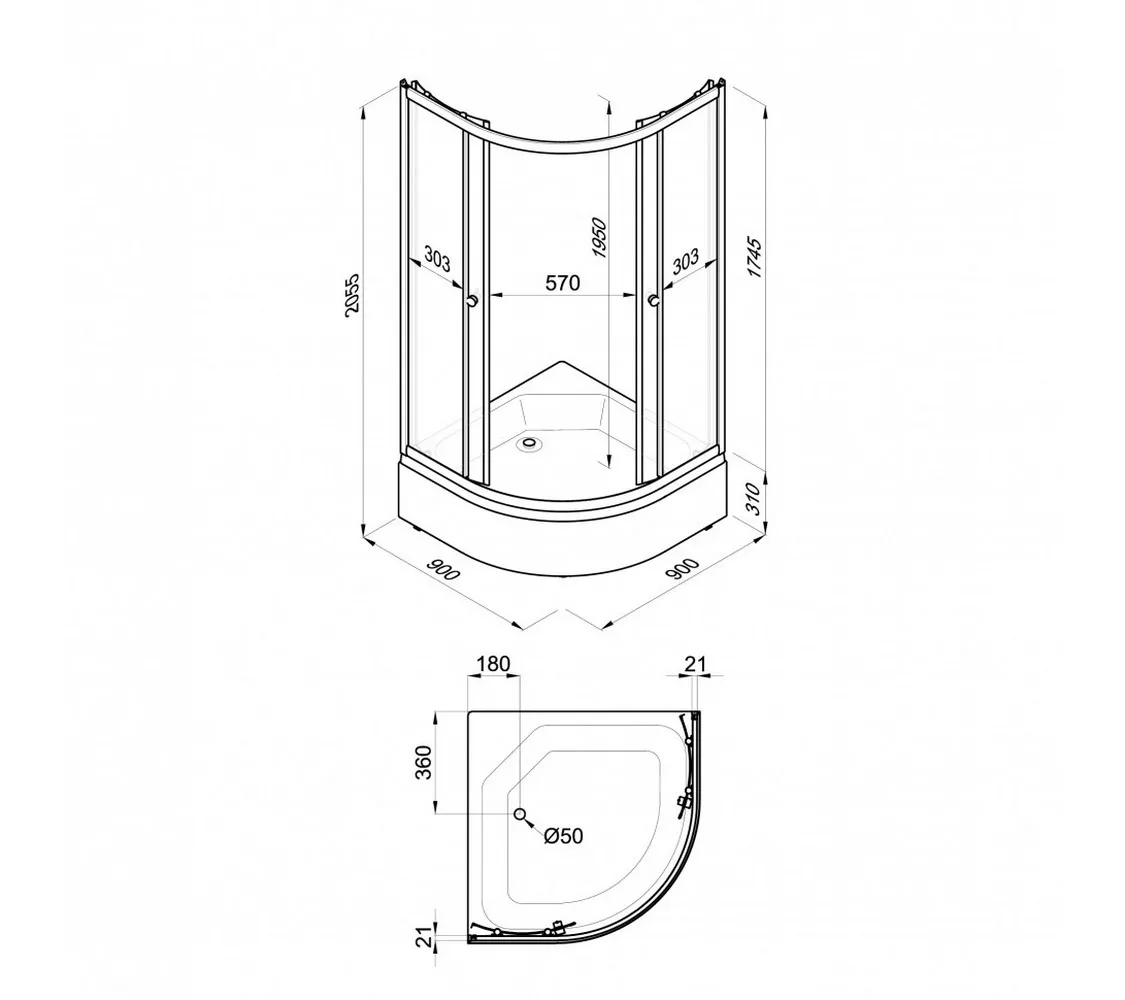 Душевое ограждение Triton ГРЭЙ B средний поддон