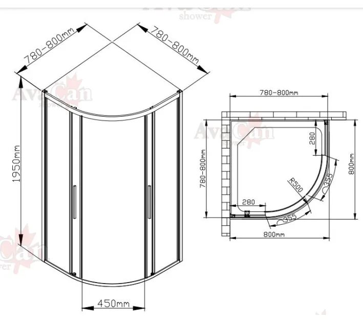 Душевой уголок AvaCan HB 80/90/100/120 MT
