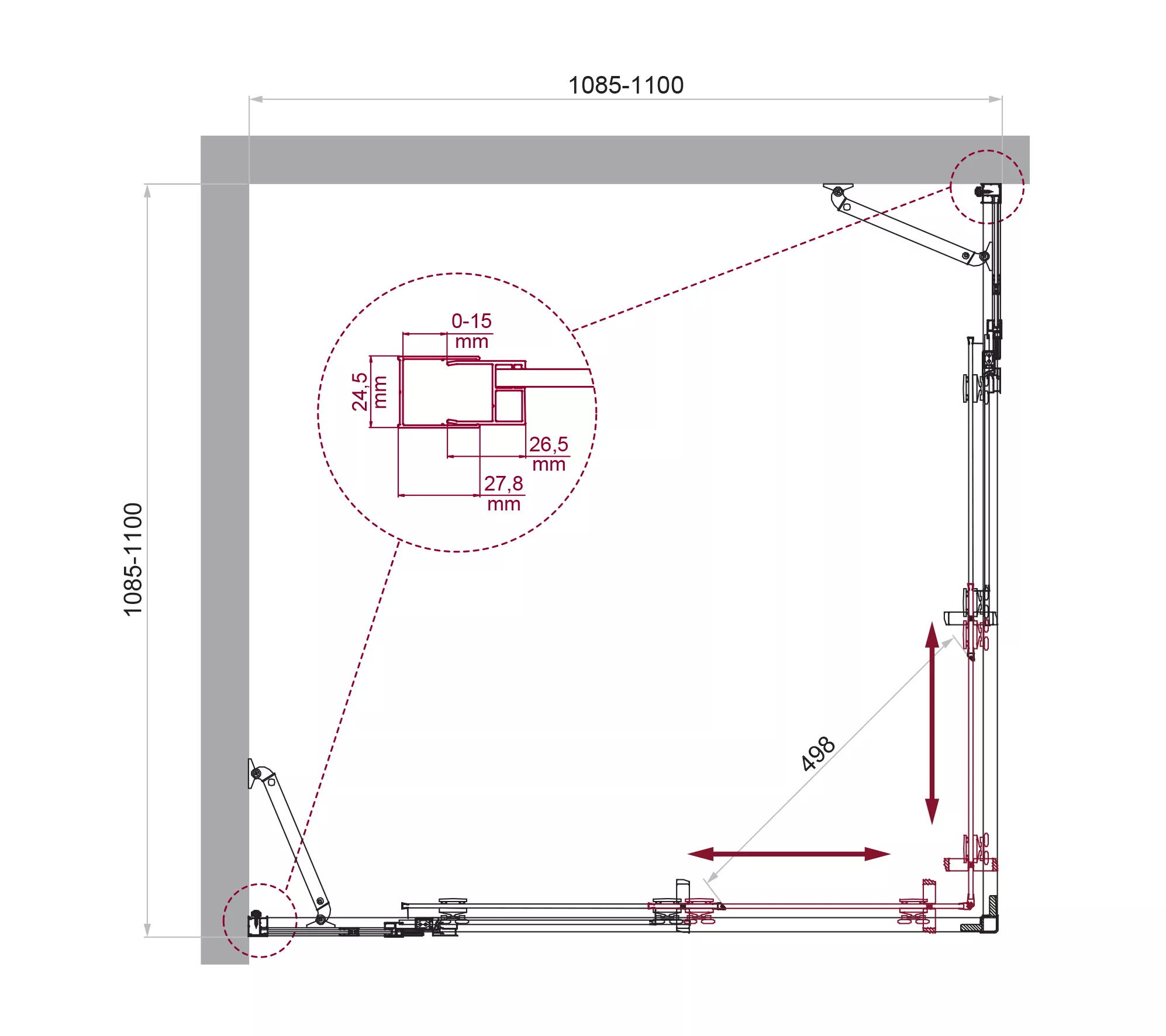 Душевой уголок BelBagno LUCE-A-22-90+20-P-Cr рифленое