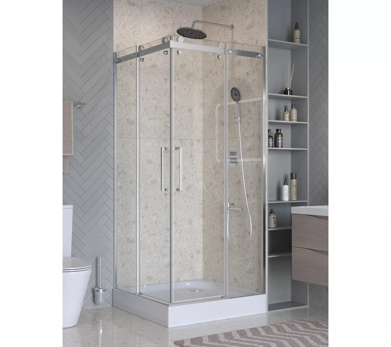 Коллекция предлагает четыре модели душевых ограждений на выбор: квадратные (A-2), прямоугольные (AH-1, AH-2) и дверь в нишу (BF-1). Все модели имеют оптимальную высоту 1950 мм. и представлены в популярных размерах, что позволяет найти идеальное решение для обеспечения комфорта и практичности душевой зоны.