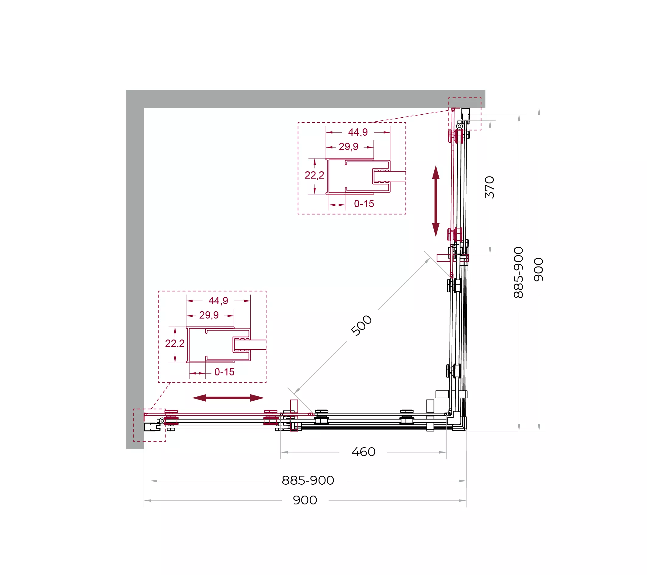 Раздвижные двери оборудованы одинарными роликами увеличенного диаметра, корпуса которых изготовлены из прочного сплава Zamak (цинко-алюминиево-магниево-медного состава) и нержавеющей стали. Такая комбинация материалов обеспечивает длительную и надежную эксплуатацию механизмов.