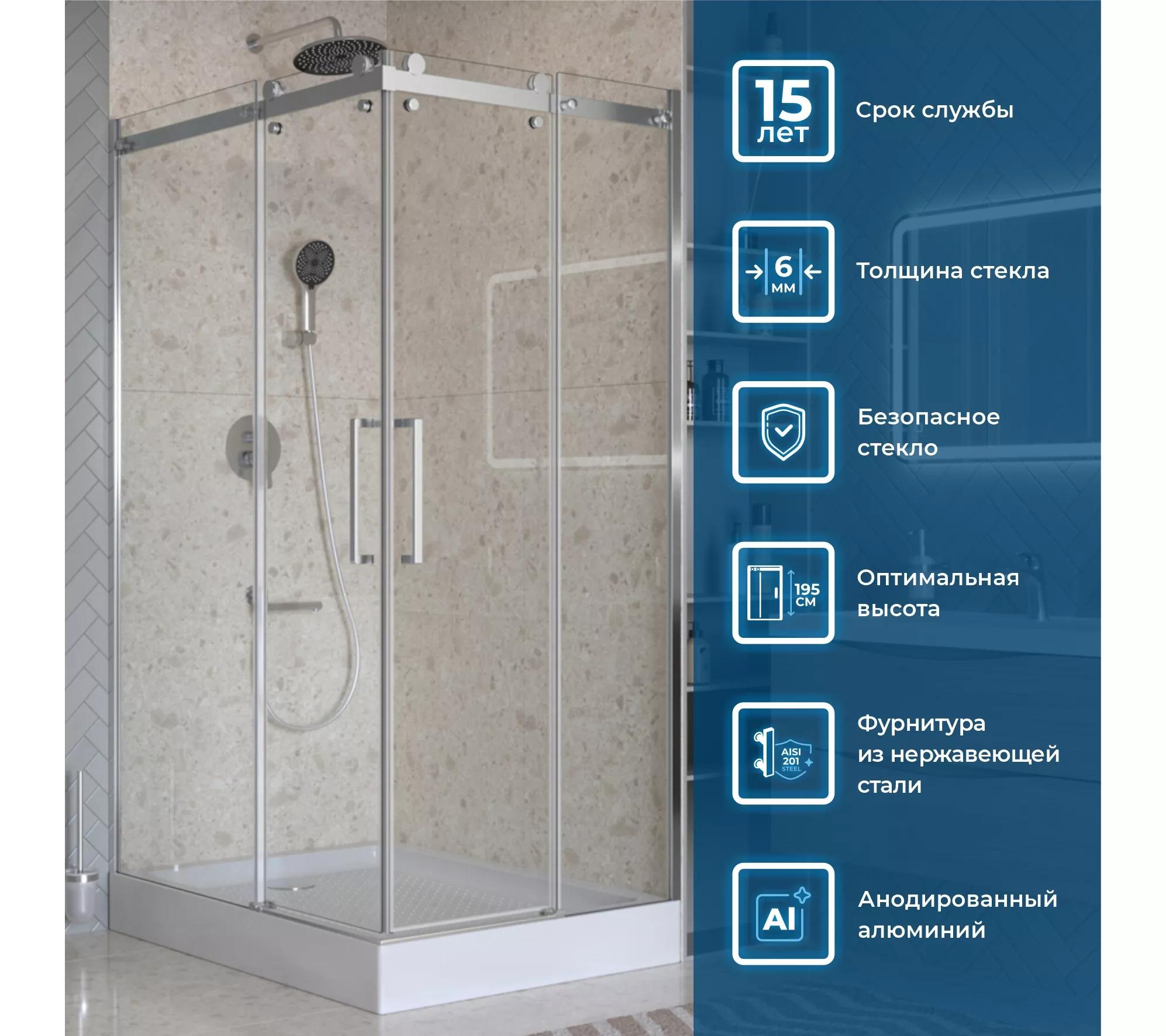 Коллекция предлагает четыре модели душевых ограждений на выбор: квадратные (A-2), прямоугольные (AH-1, AH-2) и дверь в нишу (BF-1). Все модели имеют оптимальную высоту 1950 мм. и представлены в популярных размерах, что позволяет найти идеальное решение для обеспечения комфорта и практичности душевой зоны.