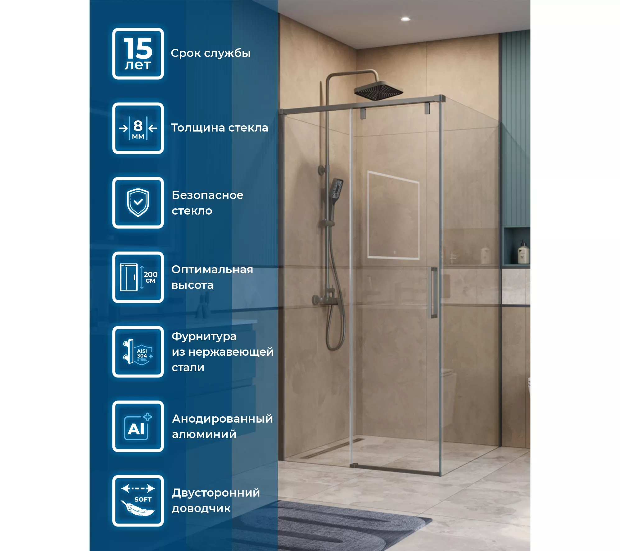● Эстетика минимализма: Лаконичные линии, узкие профили и прозрачное стекло визуально расширяют пространство, создавая ощущение легкости и безупречного порядка.