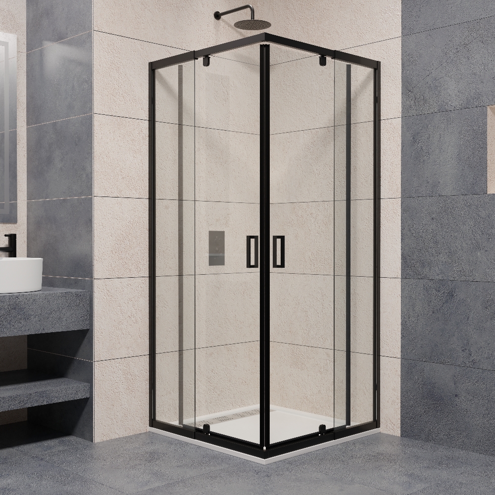 Душевой уголок квадратный с раздвижными профилями (ширина регулировки 10 см).