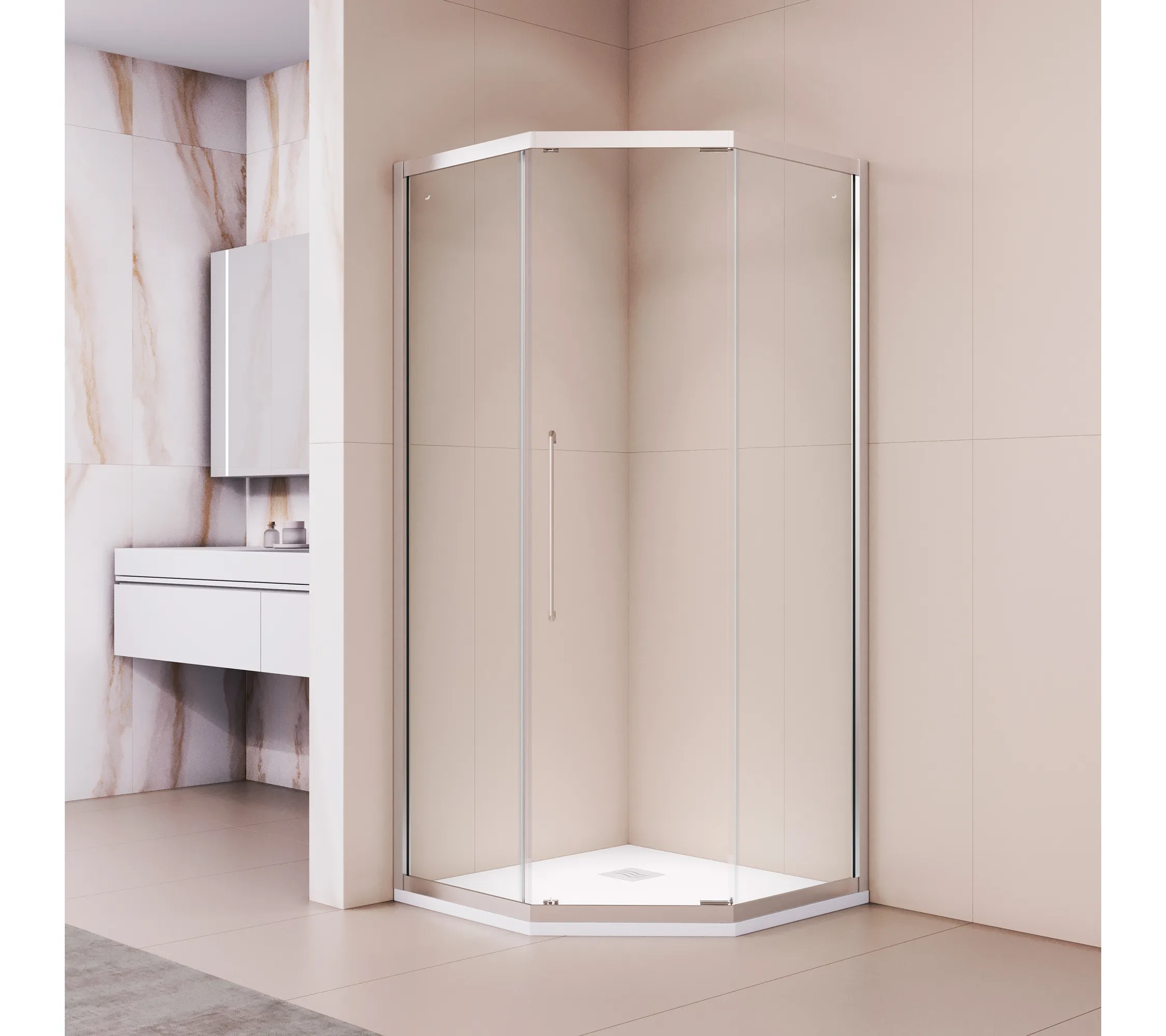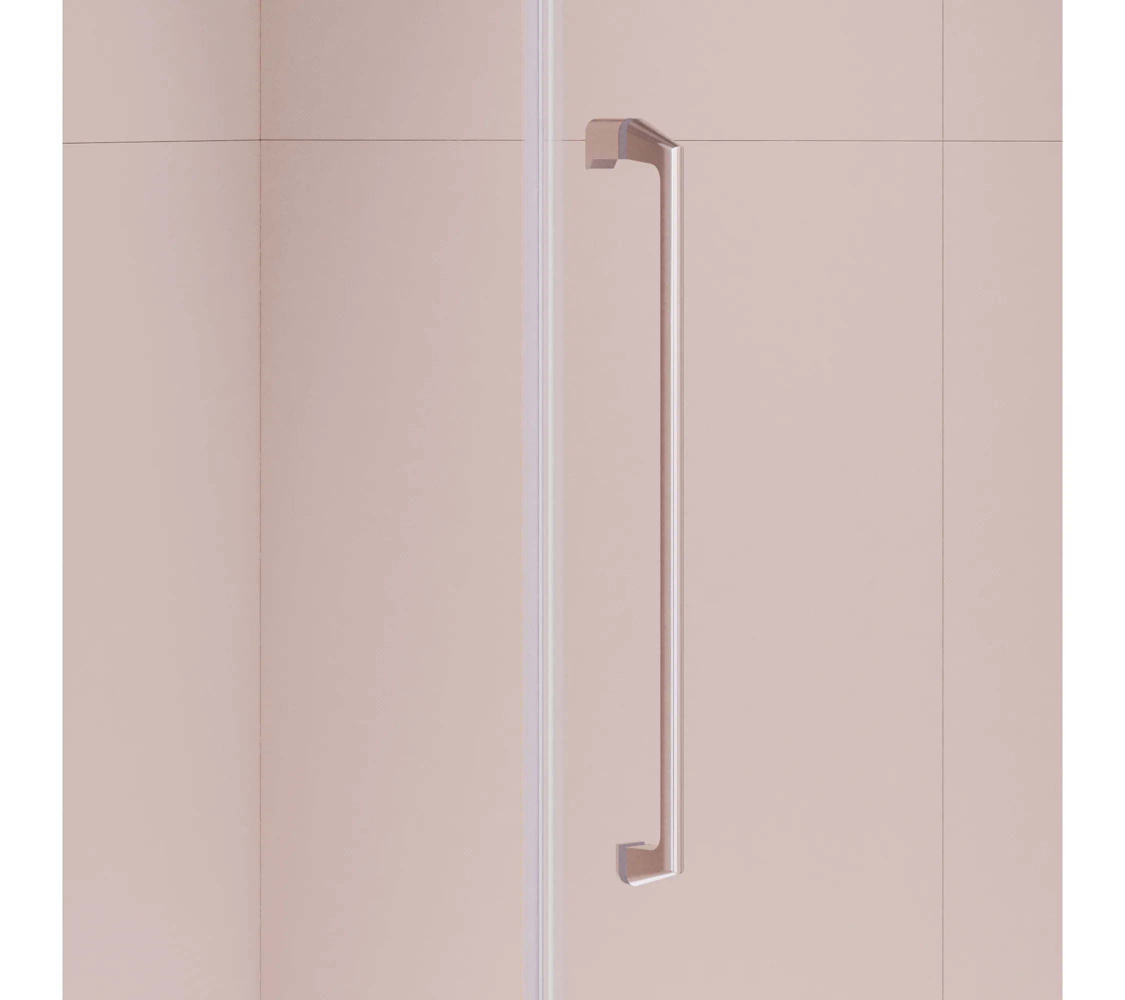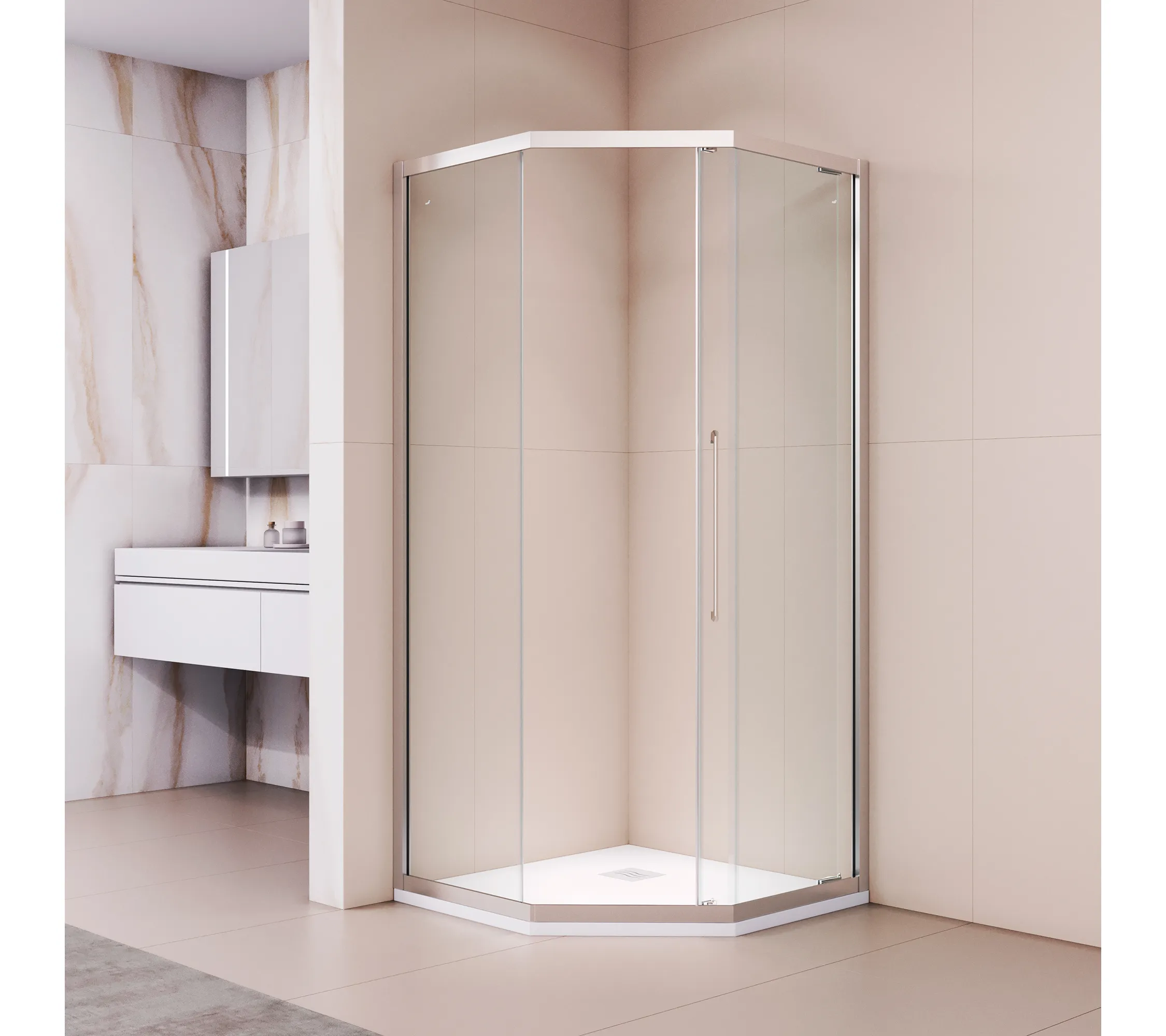 Душевой уголок трапеция со сдвижной дверью на роликах, хромированная цинковая ручка.