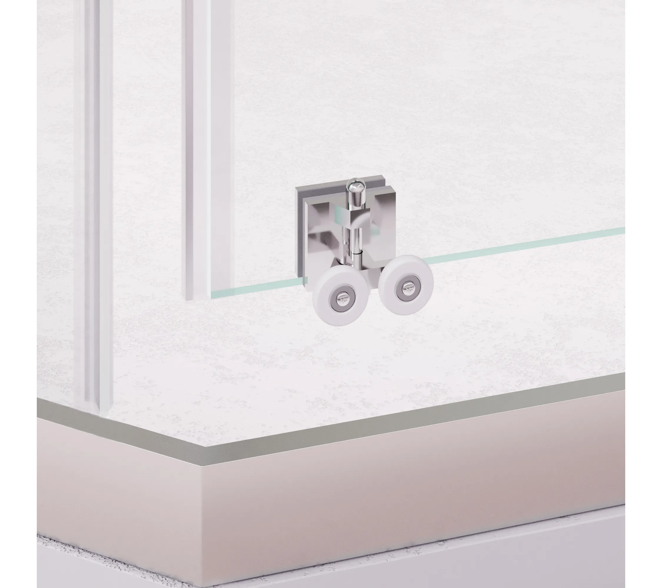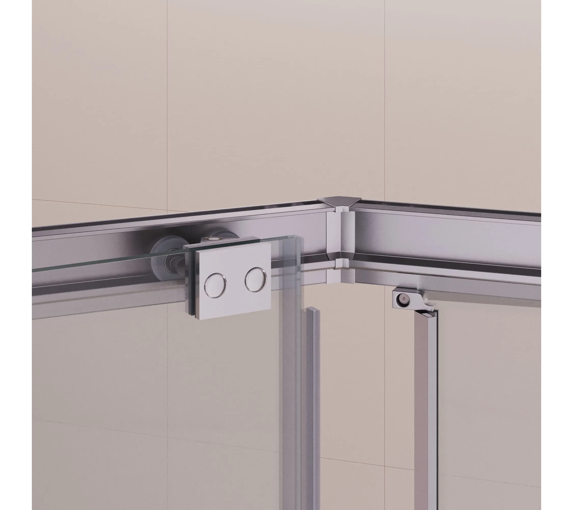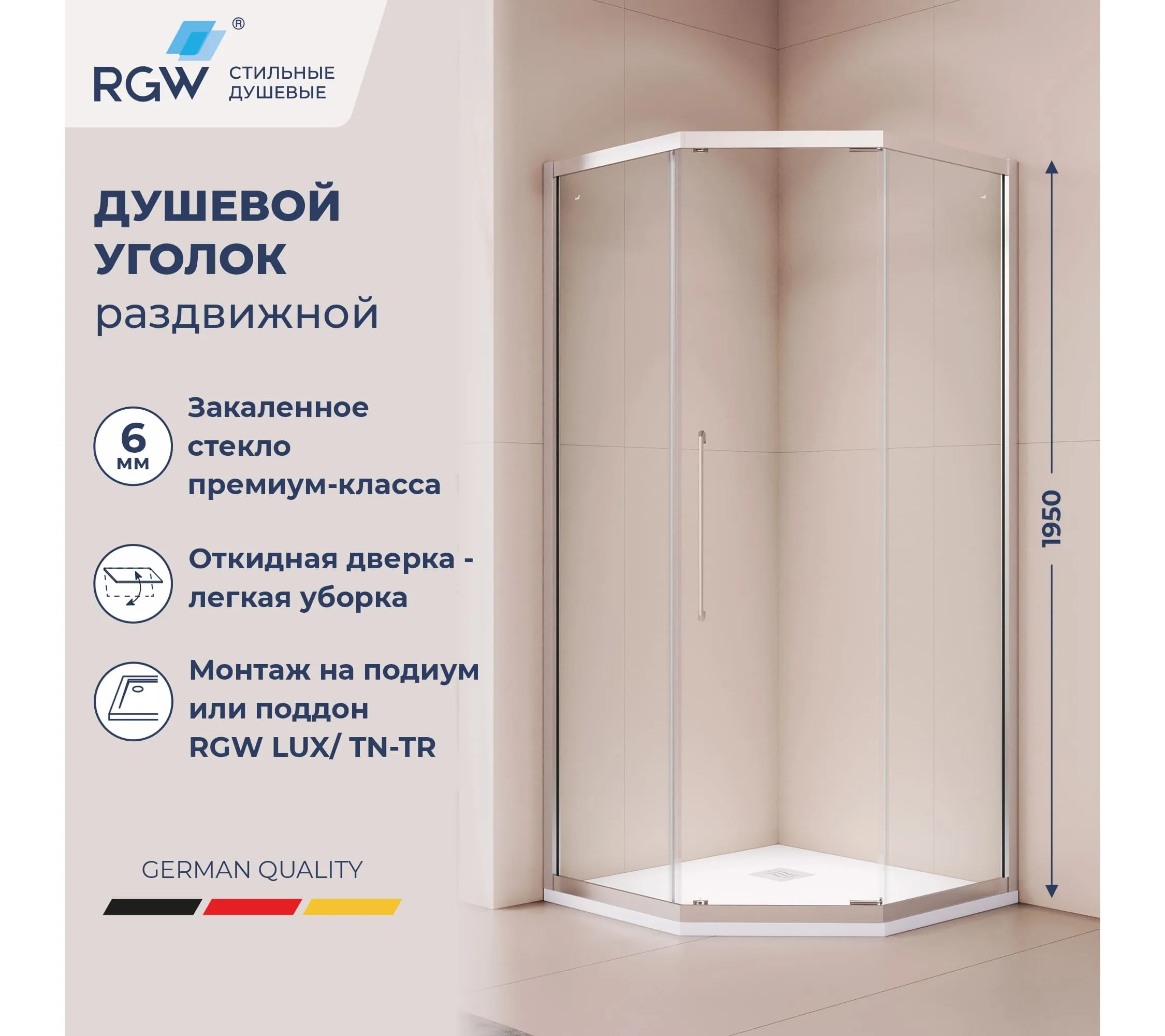 Душевой уголок трапеция со сдвижной дверью на роликах, хромированная цинковая ручка.