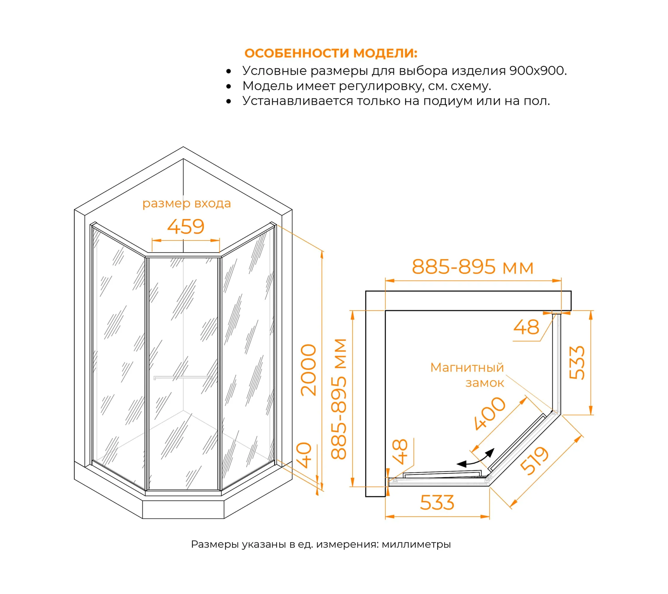 Душевой уголок RGW SV-82Gr "L/R" прозрачное/серый