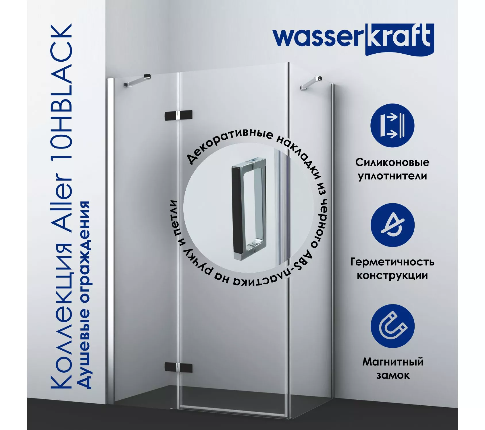 3) Механизм легкой чистки С внутренней стороны душевого уголка петли установлены заподлицо. Это делает уход за поверхностью душевого уголка простым и доступным.