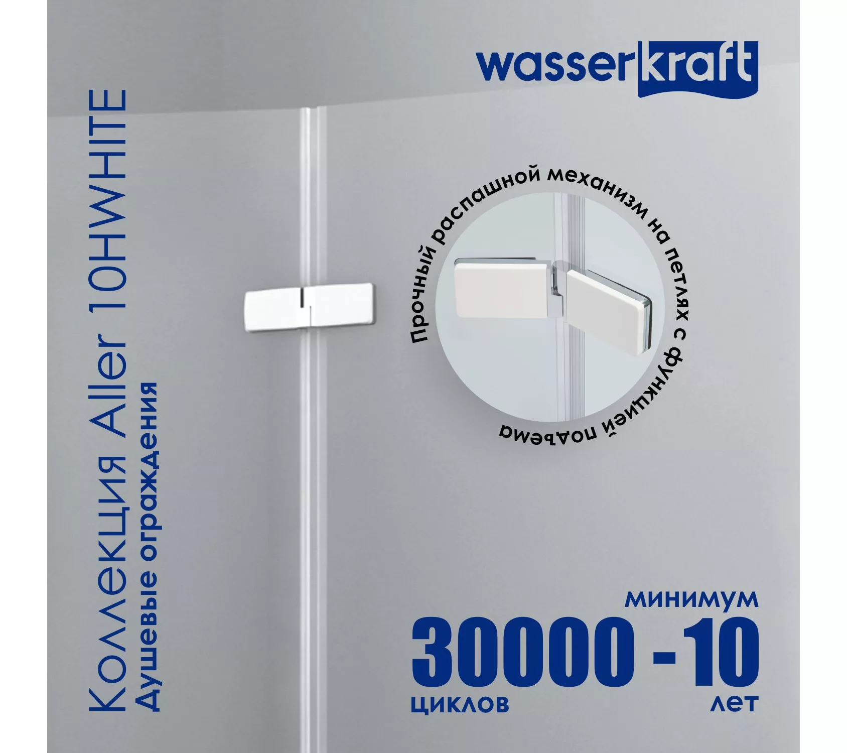 6) Прочный распашной механизм Механизм рассчитан минимум на 30 000 рабочих циклов. Это значит, что семья из четырех человек сможет пользоваться душевым уголком минимум 10 лет. Конструкция оборудована специальным подъемным механизмом. Благодаря этому двери душевого уголка приподнимаются при открытии. Это необходимо для бесшумного открывания/закрывания двери и долгого срока службы силиконовых уплотнителей двери.