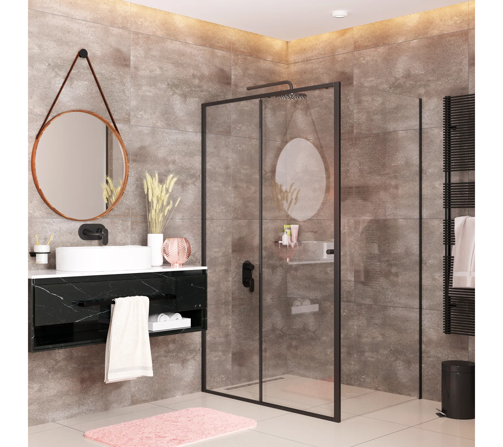 6) Качественное покрытие Комплектующие душевого уголка имеют качественное покрытие черного цвета, которое устойчиво к потускнению и легко очищается.