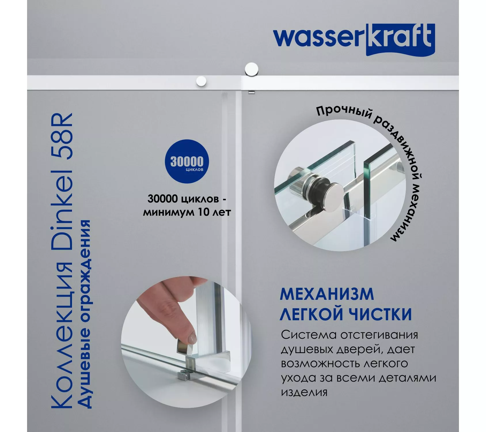 2) Покрытие стекла WasserSchutz Покрытие WasserSchutz защищает поверхность стекла от разводов воды и известковых отложений. Капли воды на поверхности невидимого защитного слоя не задерживаются, а стекают, не оставляя подтеков. Это гарантирует легкий уход за изделием. Сторона стекла, где нанесено покрытие WasserSchutz, обозначается специальной наклейкой. Именно этой стороной внутрь необходимо устанавливать стекло при монтаже.