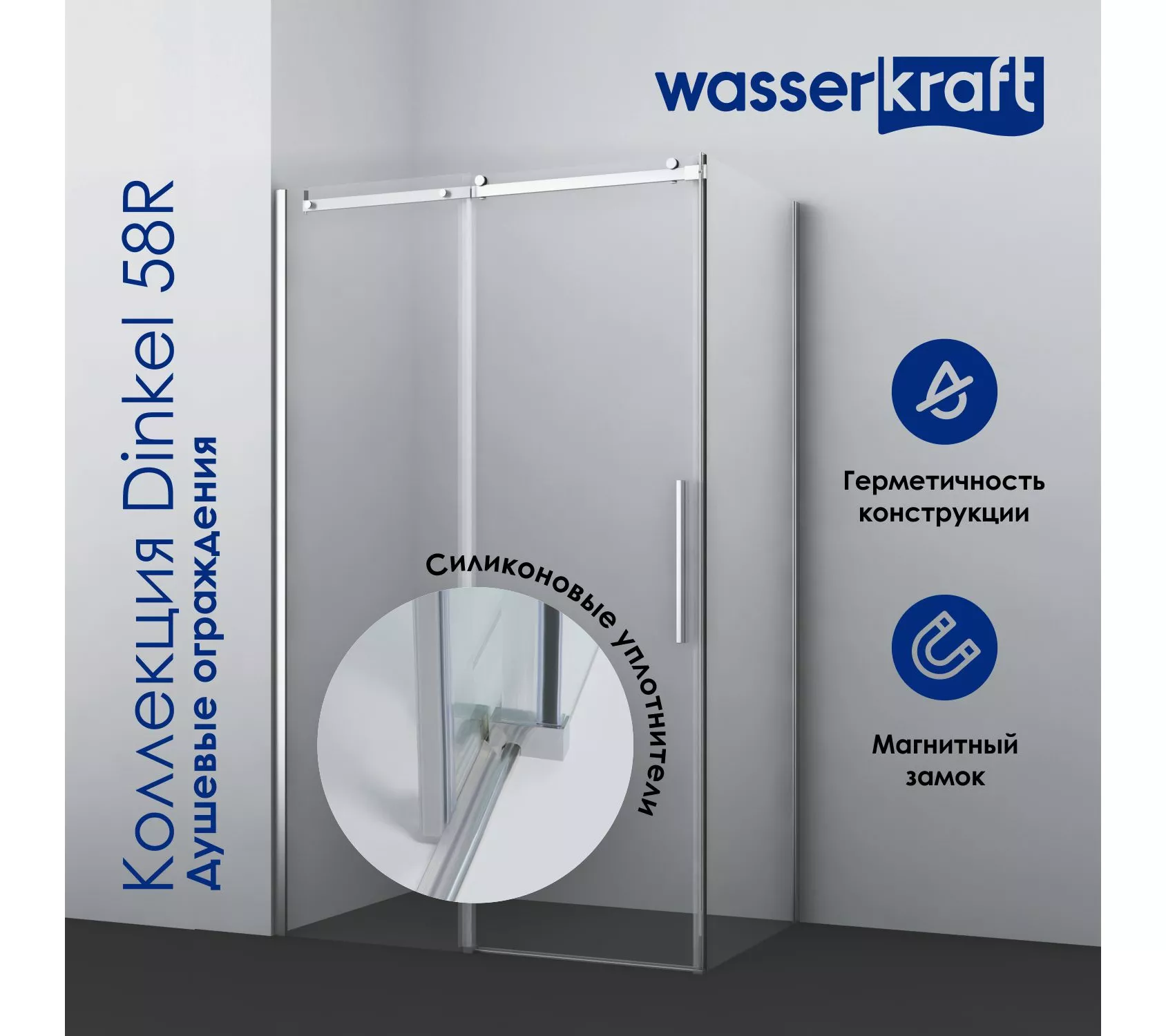 5) Силиконовый уплотнитель с магнитным замком двери Благодаря силиконовому уплотнителю с магнитным замком дверь душевого уголка герметично закрывается, плотно прилегая к профилю.