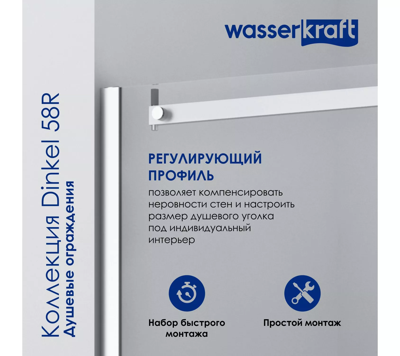8) Регулирующий профиль до 13 мм Возможность регулировки бокового профиля позволяет компенсировать неровности стен и настроить размер душевого уголка под индивидуальный интерьер.