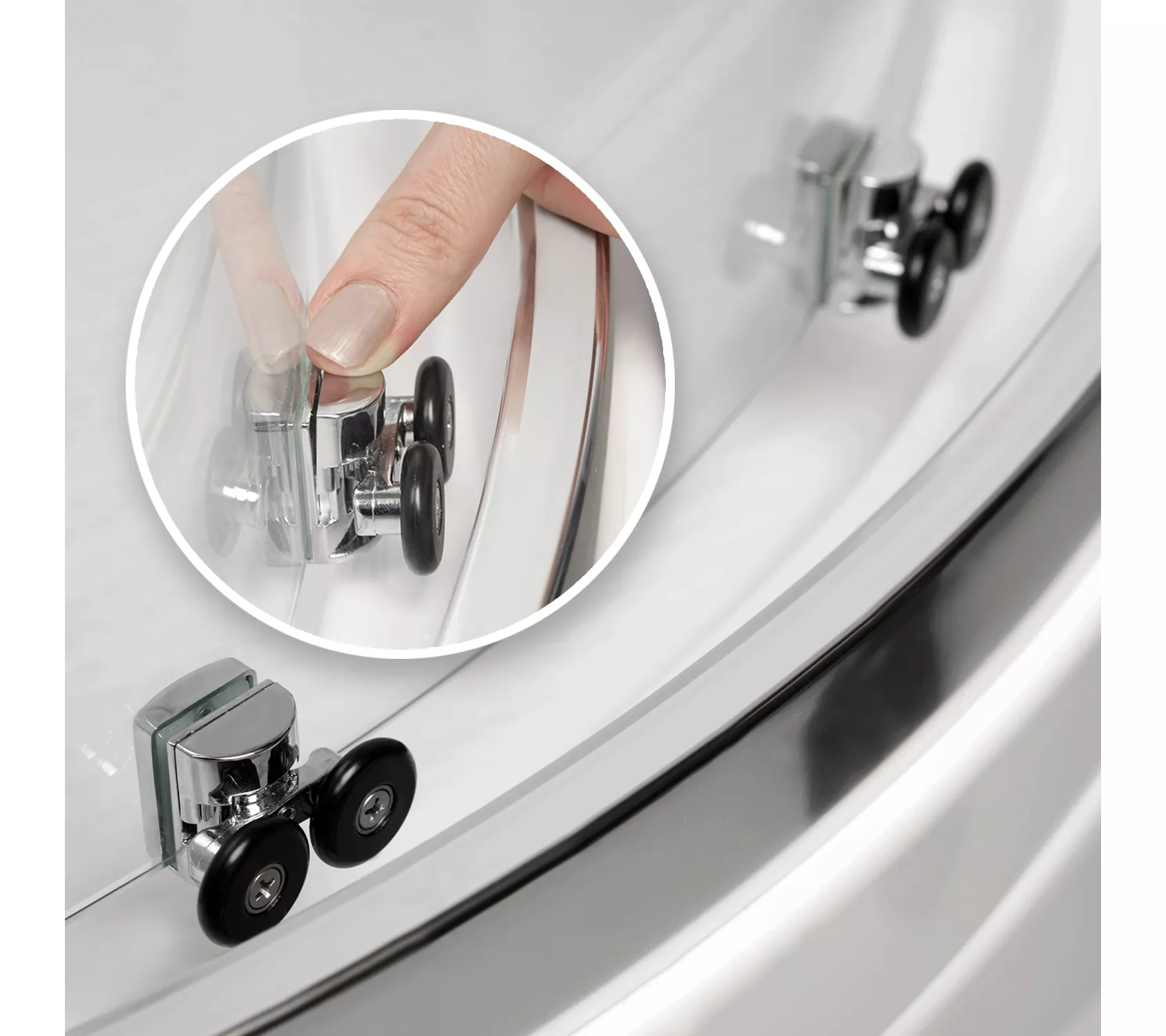 5) Прочный раздвижной механизм - Механизм рассчитан минимум на 30 000 рабочих циклов. Это значит, что семья из четырех человек сможет пользоваться душевым уголком минимум 10 лет. Мягкое и плавное скольжение. Данный механизм позволяет максимально экономить пространство ванной комнаты.