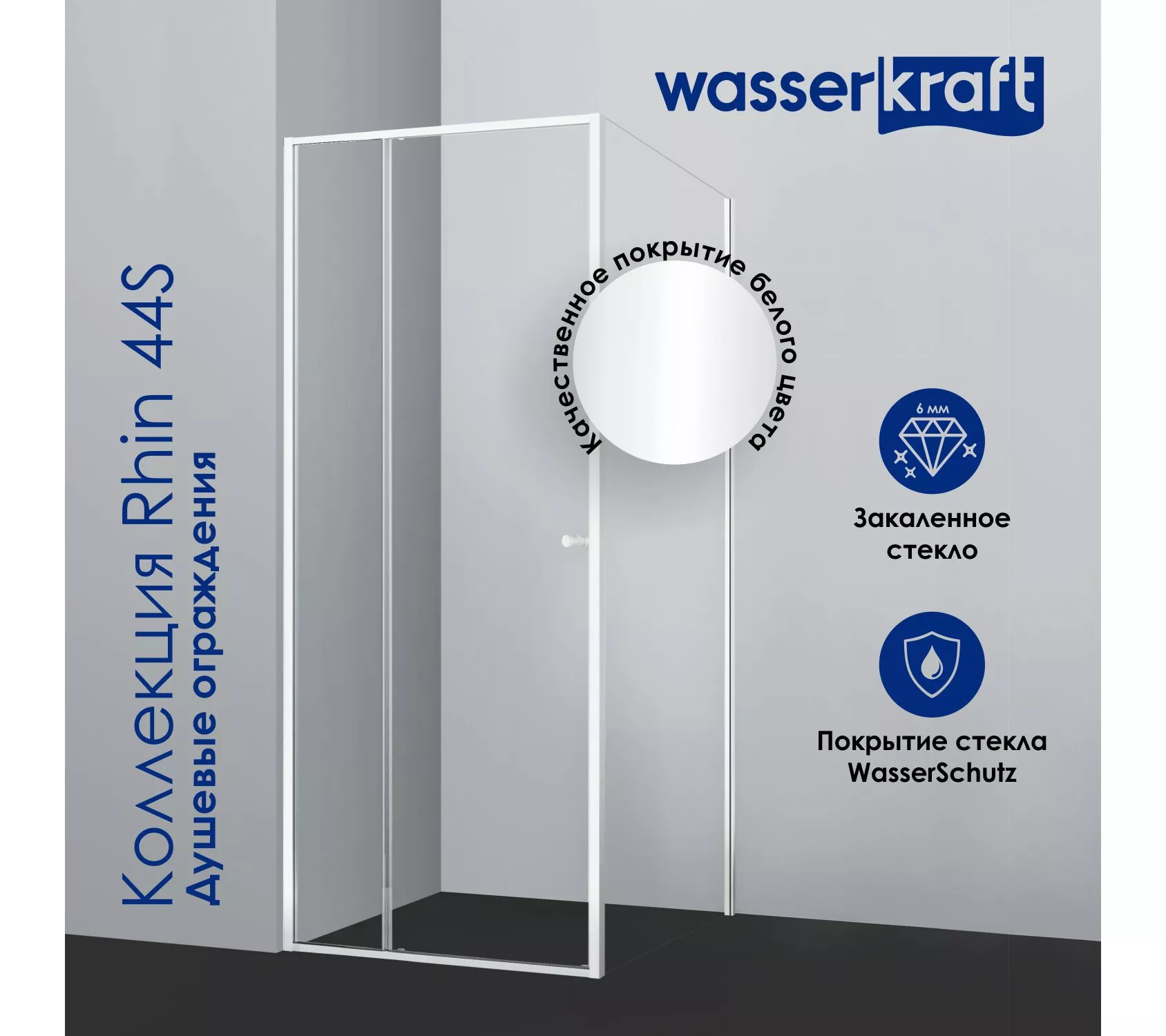 2) Покрытие стекла WasserSchutz Покрытие WasserSchutz защищает поверхность стекла от разводов воды и известковых отложений. Капли воды на поверхности невидимого защитного слоя не задерживаются, а стекают, не оставляя подтеков. Это гарантирует легкий уход за изделием. Сторона стекла, где нанесено покрытие WasserSchutz, обозначается специальной наклейкой. Именно этой стороной внутрь необходимо устанавливать стекло при монтаже.