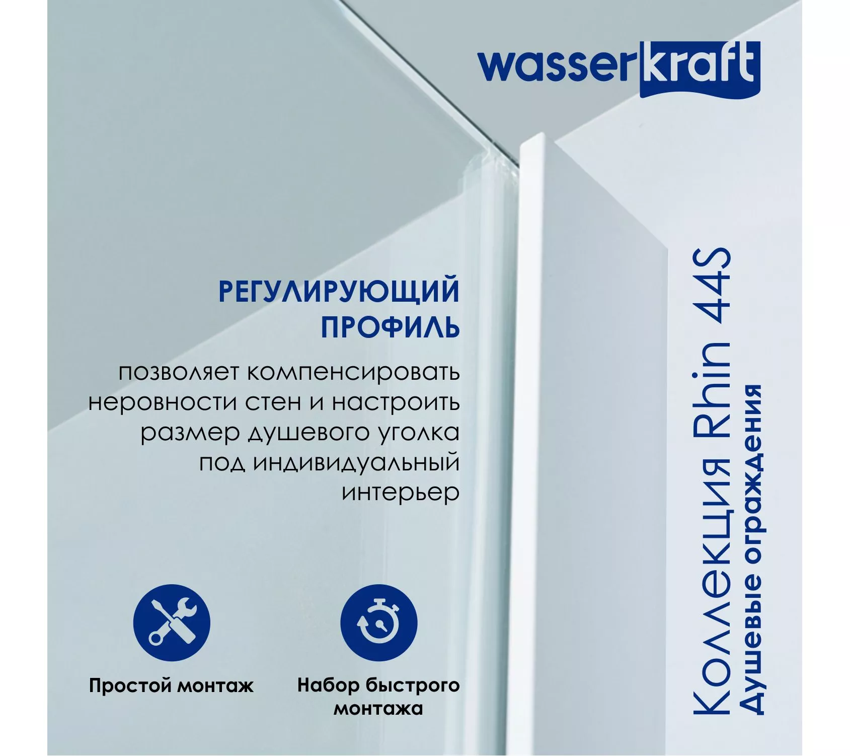 8) Регулирующий профиль до 6 мм Возможность регулировки бокового профиля позволяет компенсировать неровности стен и настроить размер душевого уголка под индивидуальный интерьер.