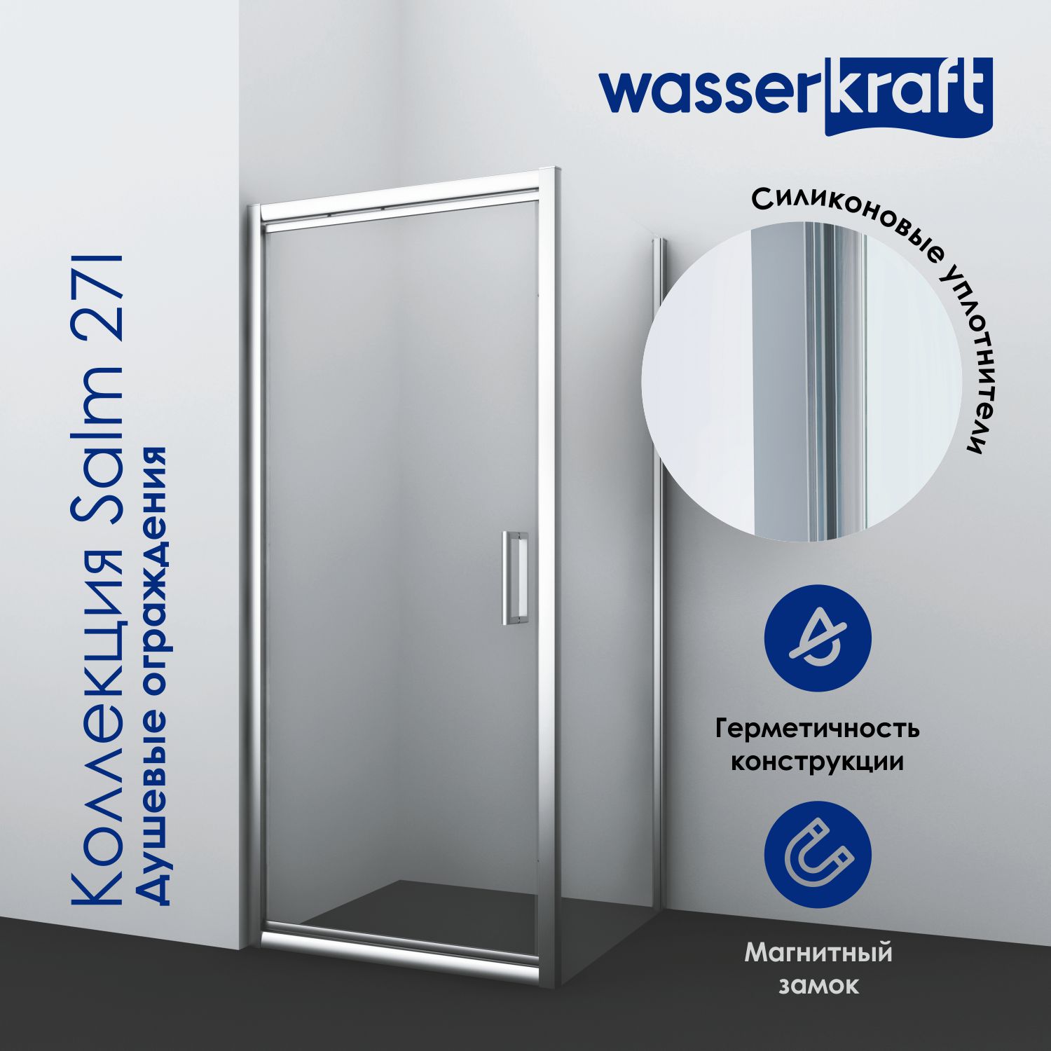 8) Силиконовый уплотнитель с магнитным замком дверей Благодаря силиконовому уплотнителю с магнитным замком двери душевого уголка герметично закрываются, плотно прилегая друг к другу.