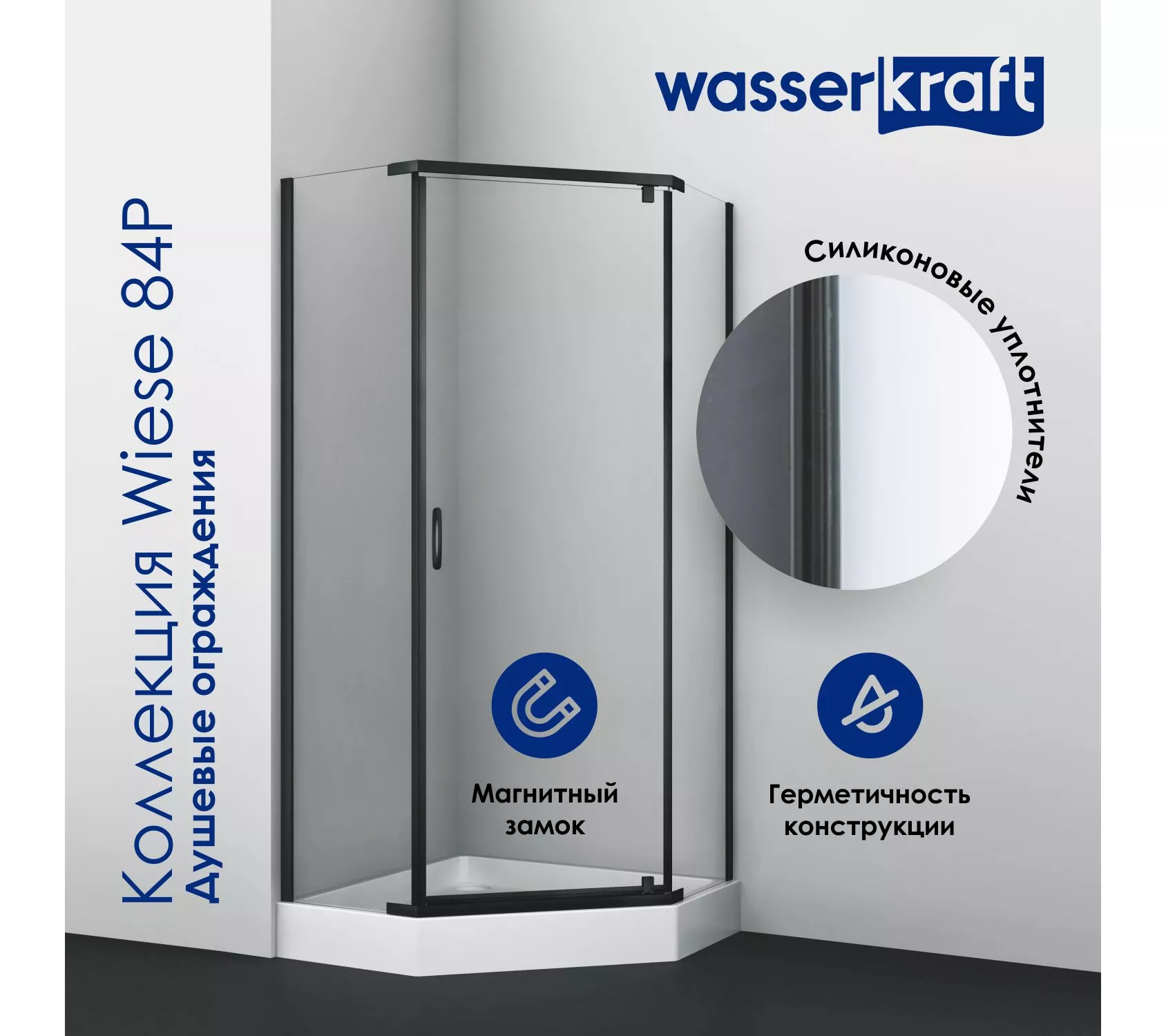 6) Силиконовый уплотнитель двери с магнитным замком - Благодаря данному уплотнителю двери душевого уголка герметично закрываются, плотно прилегая друг к другу.
