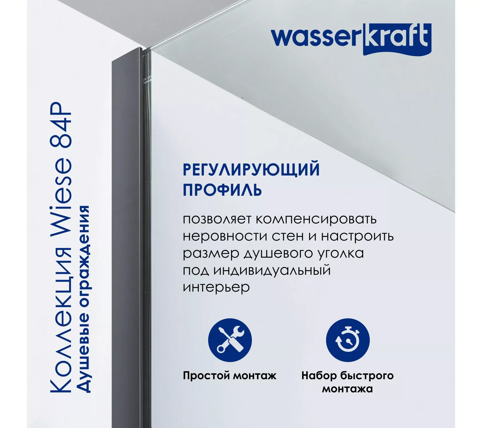 3) Регулирующий профиль до 15 мм - Возможность регулировки профиля позволяет компенсировать неровности стен и настроить размер душевого уголка под индивидуальный интерьер.