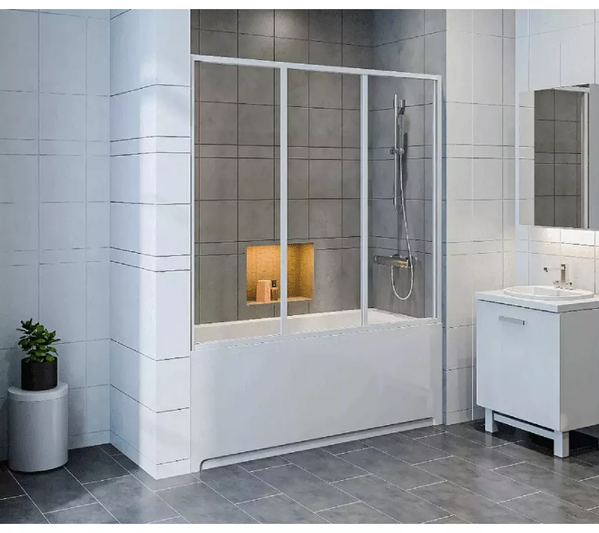 Шторки изготовлены из алюминиевого профиля, окрашенного порошковой краской, с витражами из полистирола (пластик) с фактурой «Вотер» и закаленного матового безопасного стекла с фактурой «Грэйп»