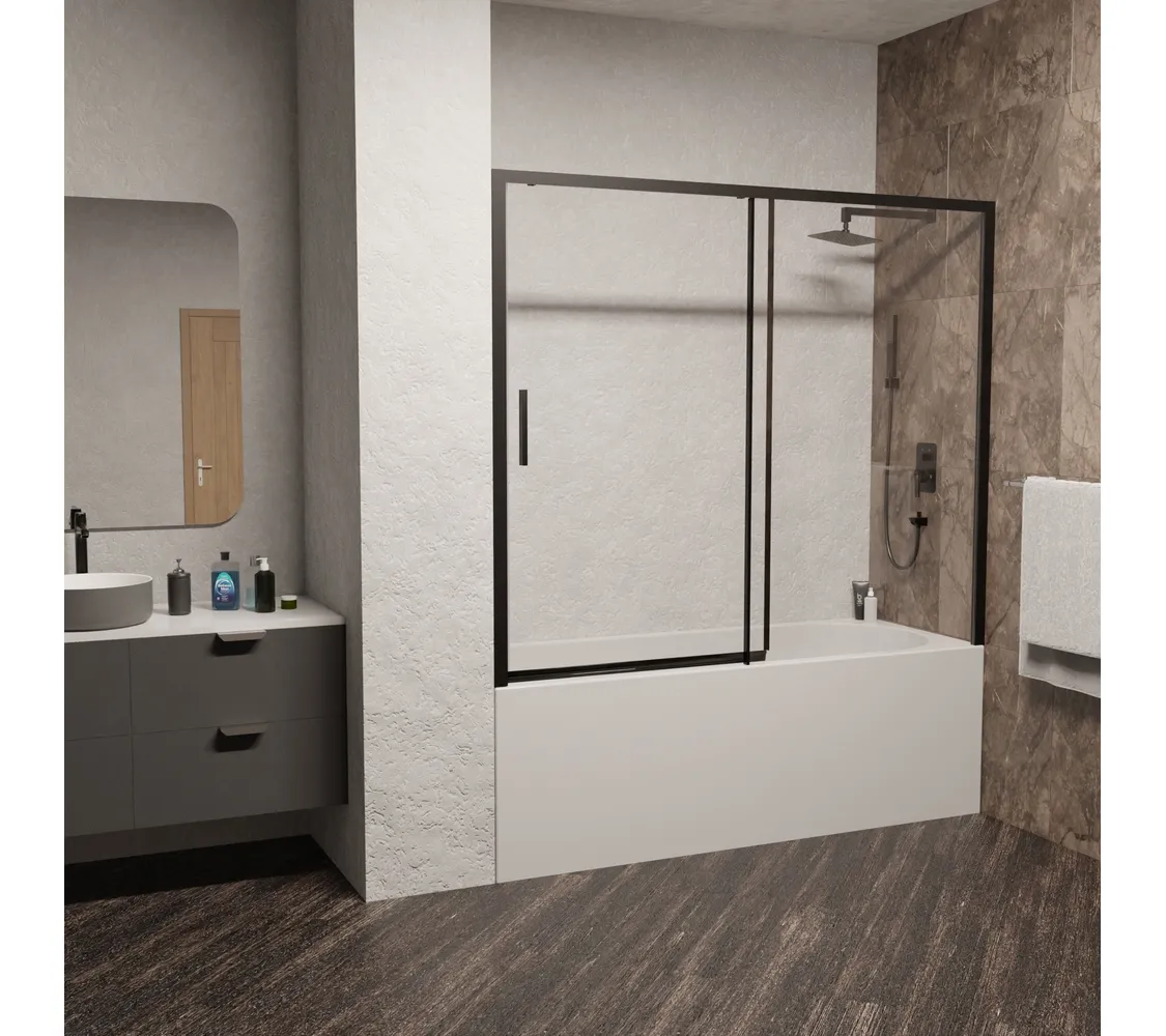 Шторка на ванну, сдвижная дверь с автодоводчиком. Толщина закаленного, безопасного стекла 6 мм.