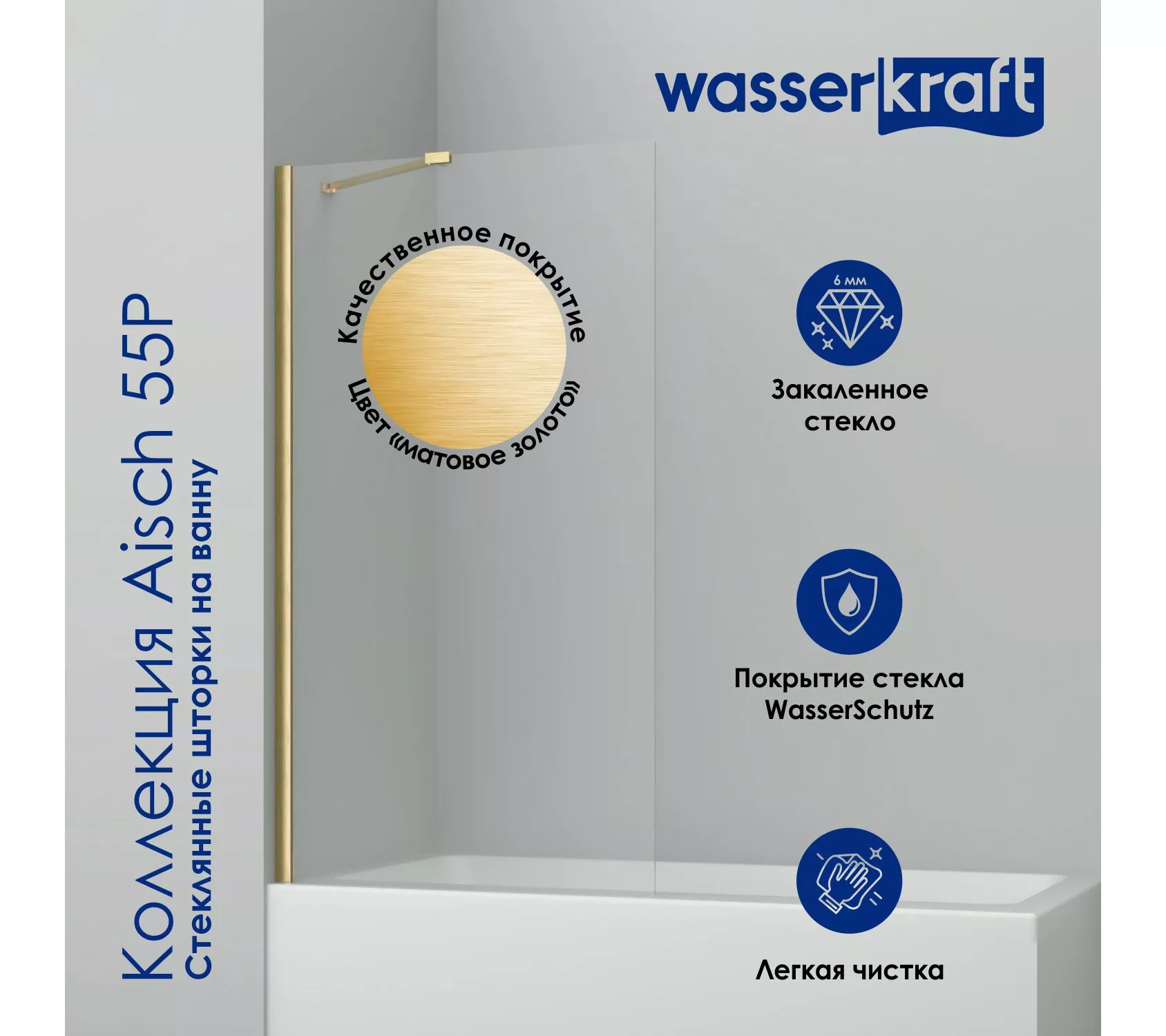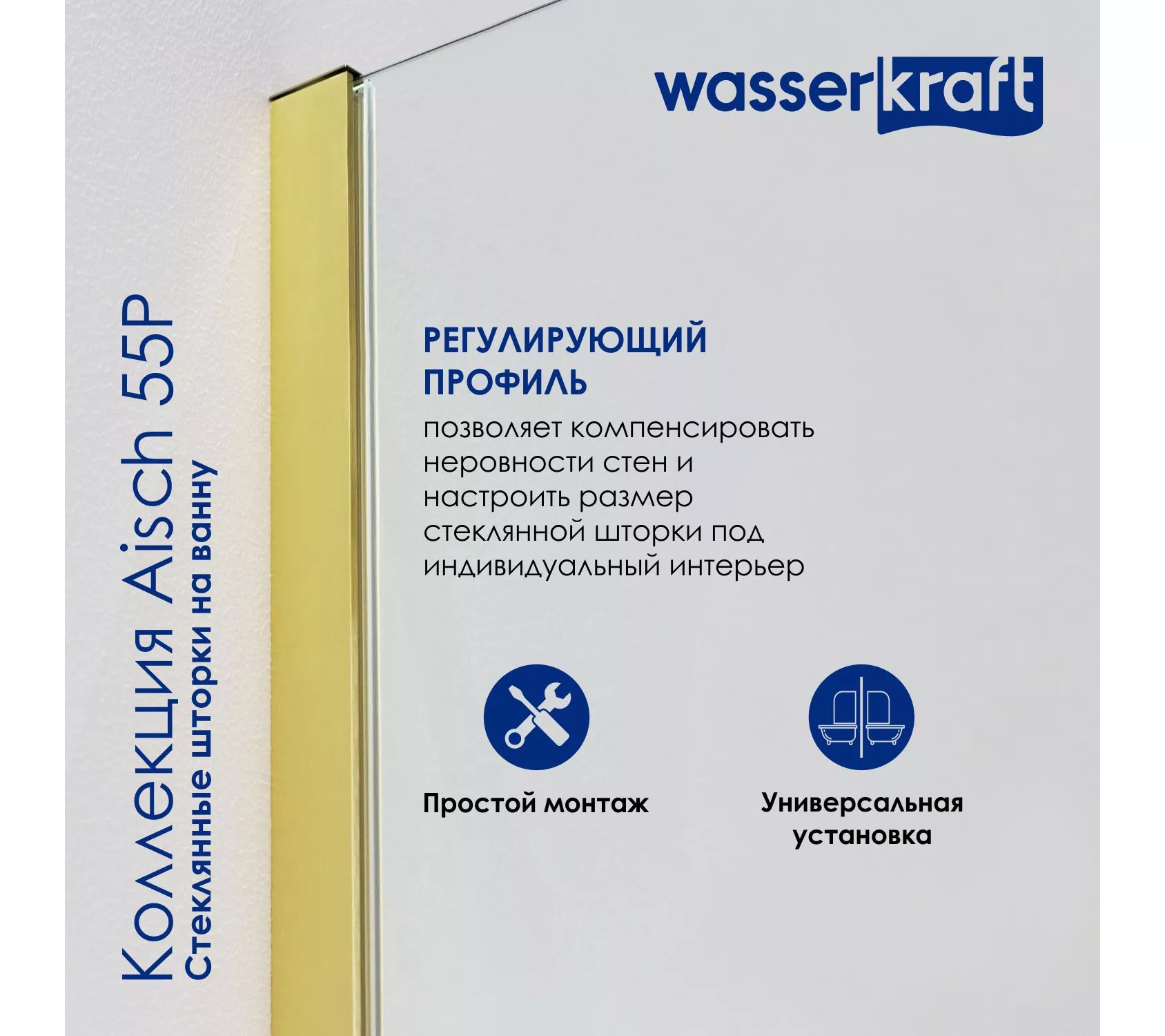 5) Комплектующие душевой шторки имеют надежное покрытие, которое устойчиво к потускнению и легко очищается. Цвет профиля "матовое золото".