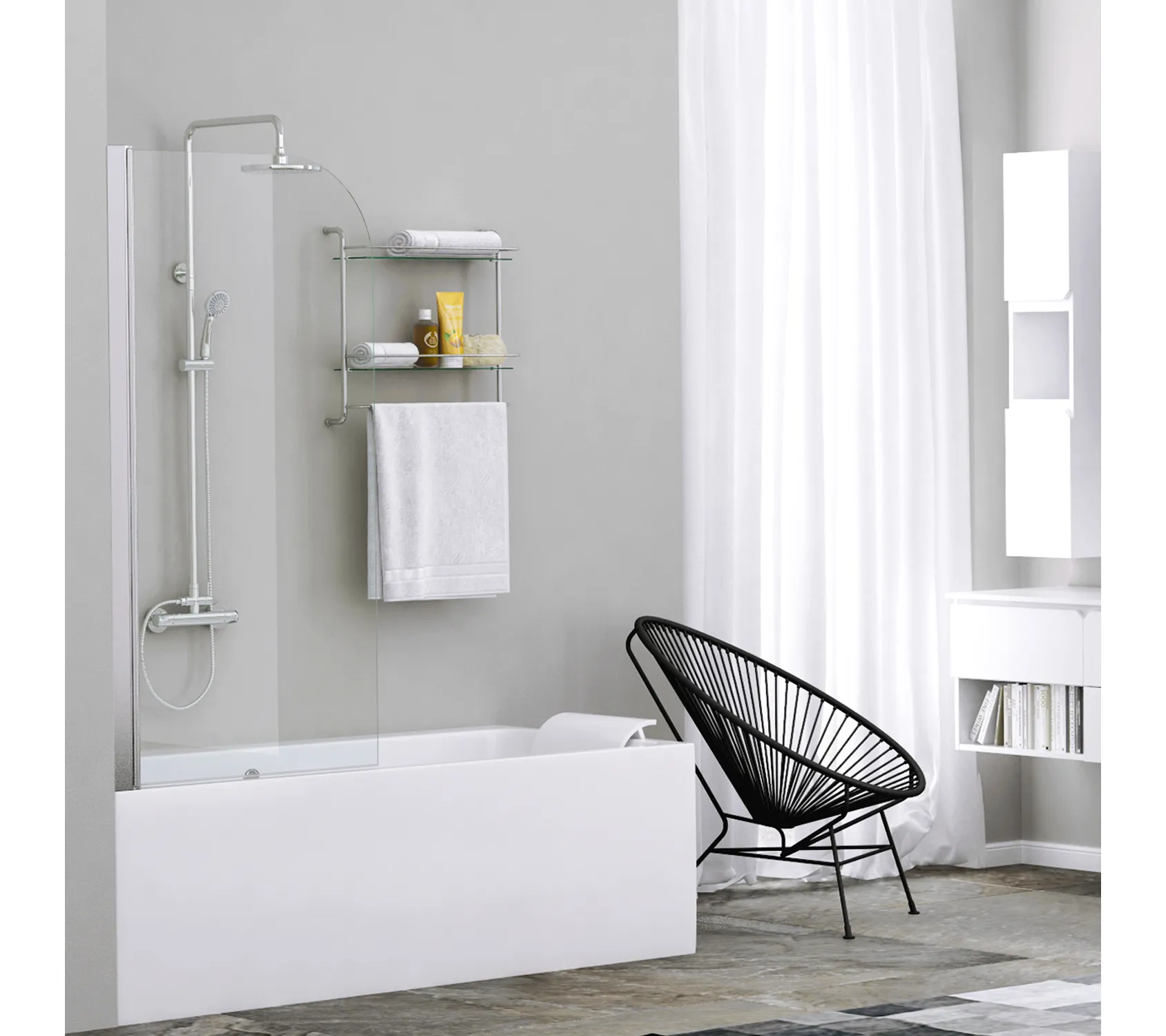 1) Закаленное стекло 6 мм. В стеклянных шторках используется закаленное стекло стандарта EN 12150-1. Обладает термической прочностью и совершенно безопасно для человека.
