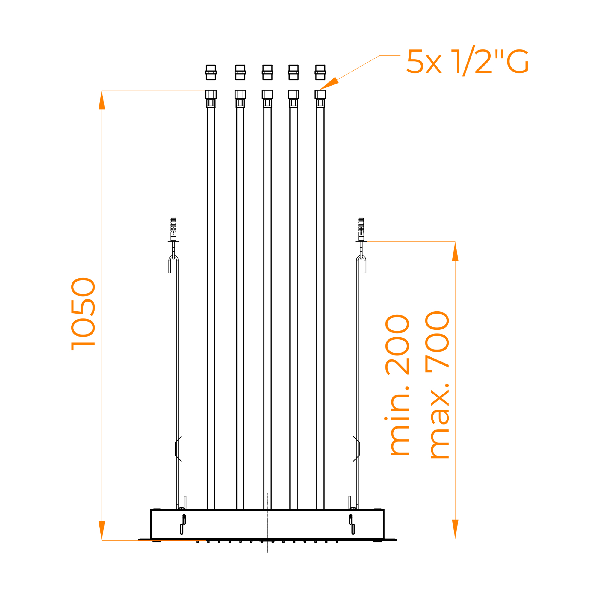 - Встраиваемый душ выполнения из нержавеющей стали ASI 304.