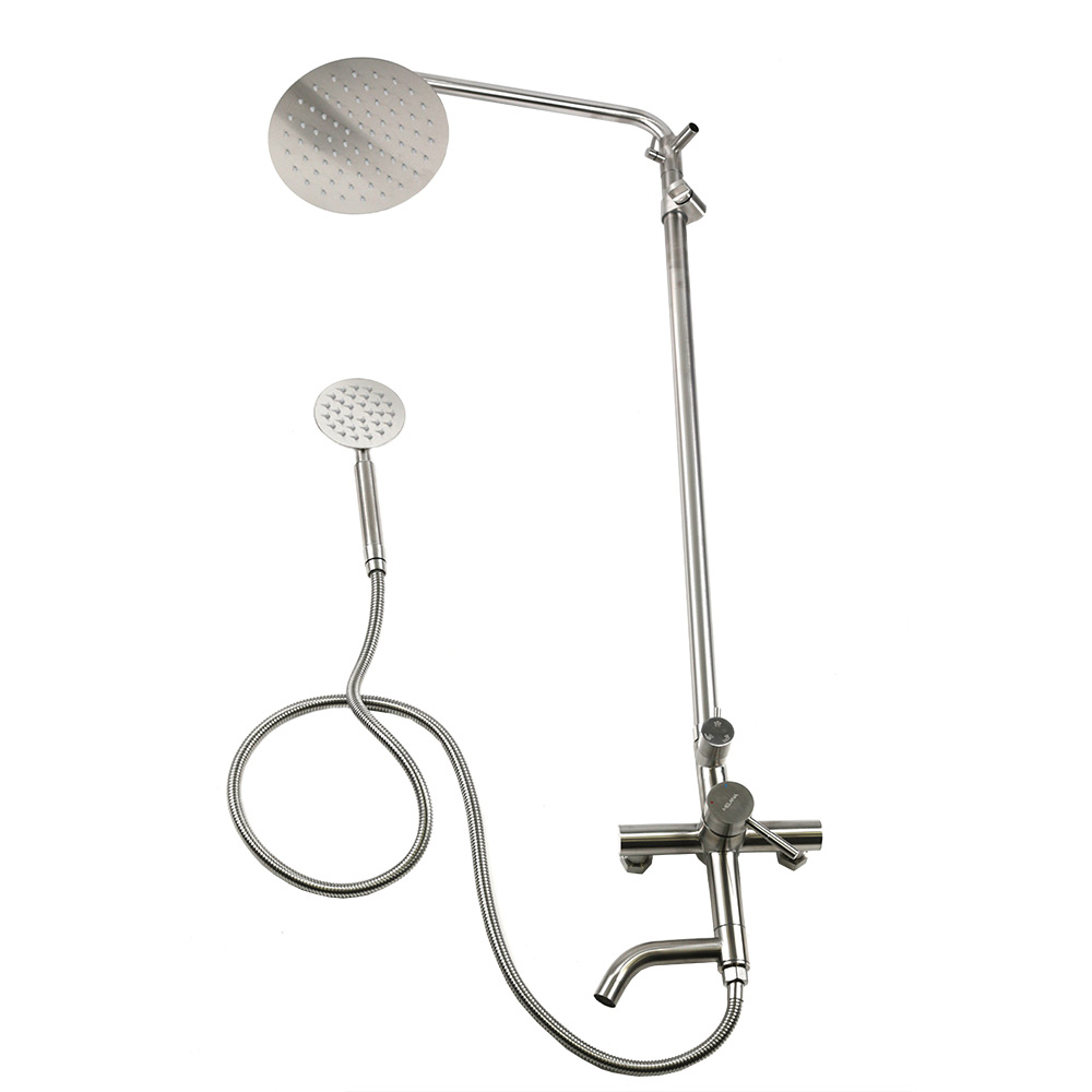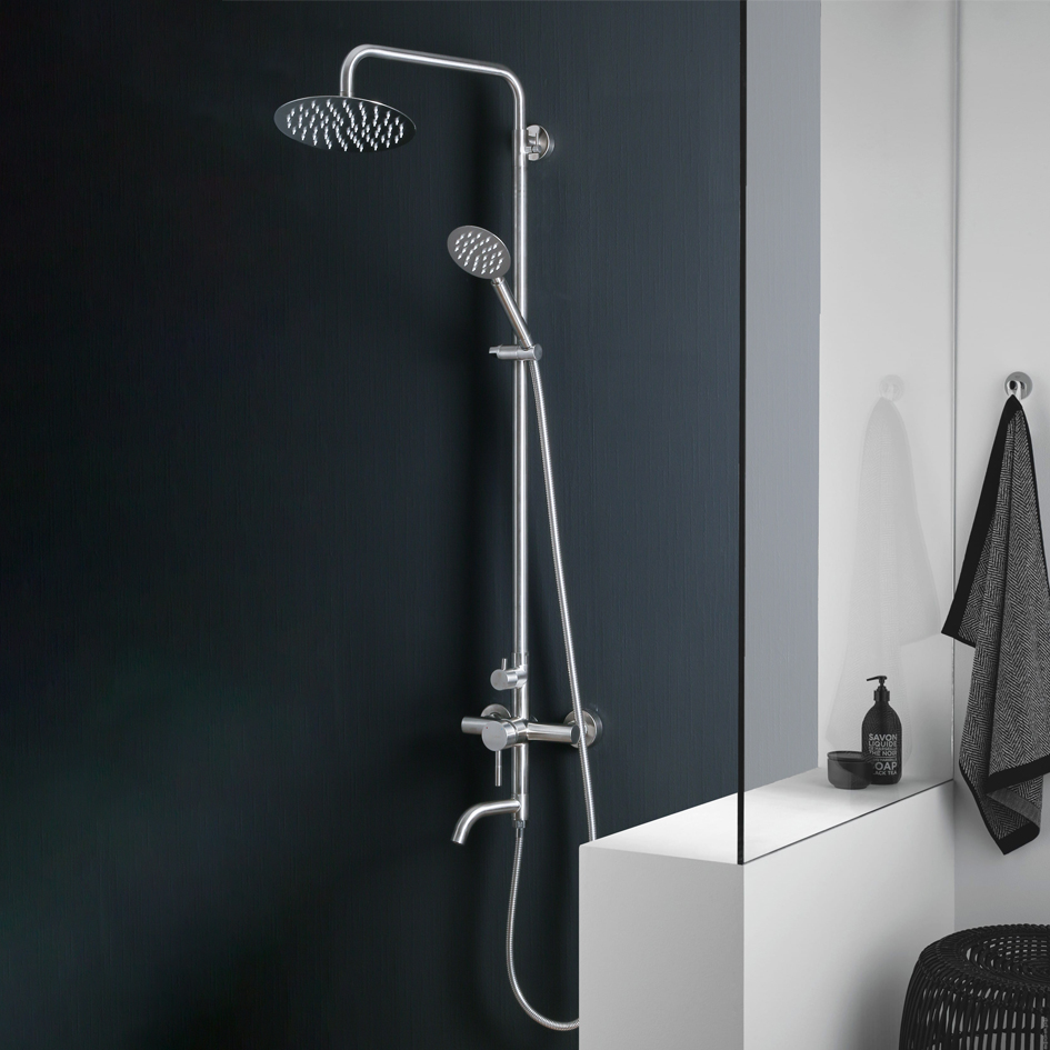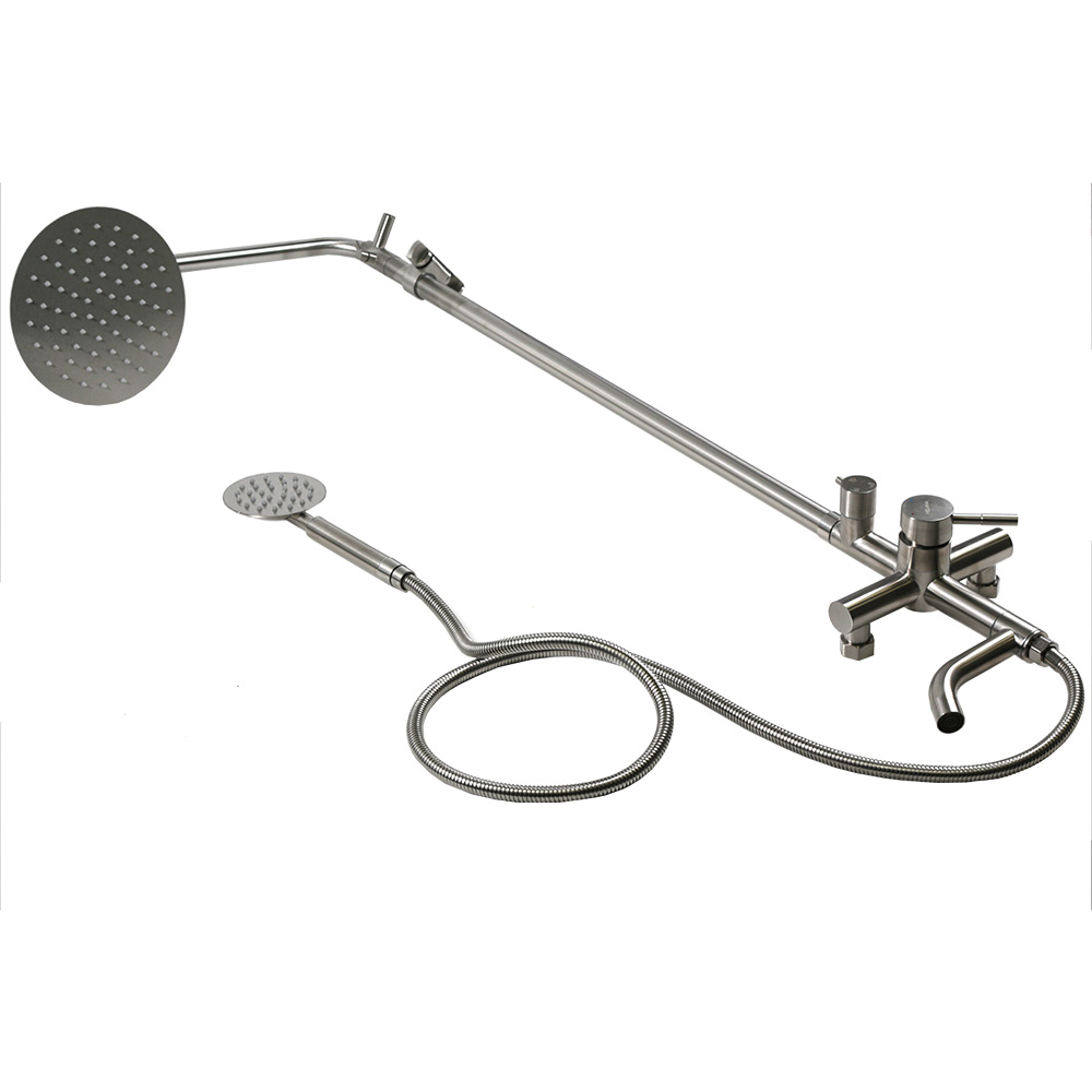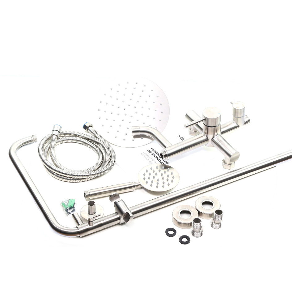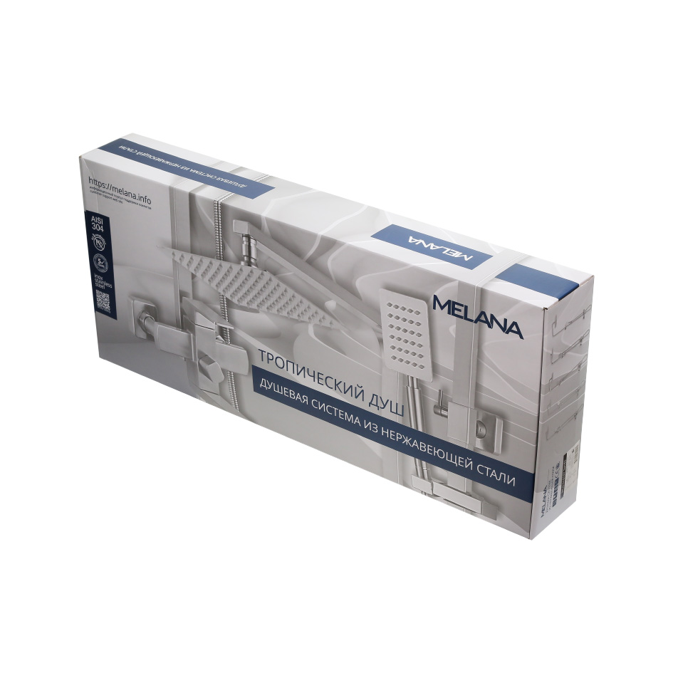 Душевая система MELANA-610107 Tondo нерж.сталь, с тропическим душем, лейкой и смесителем