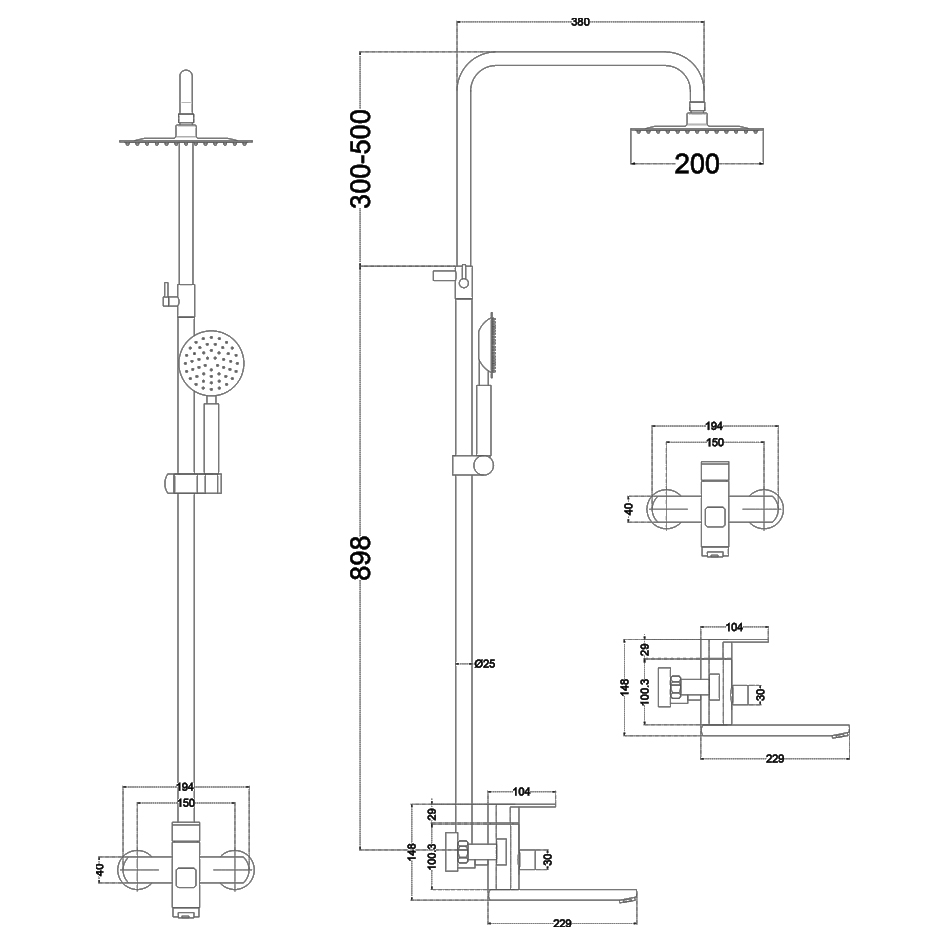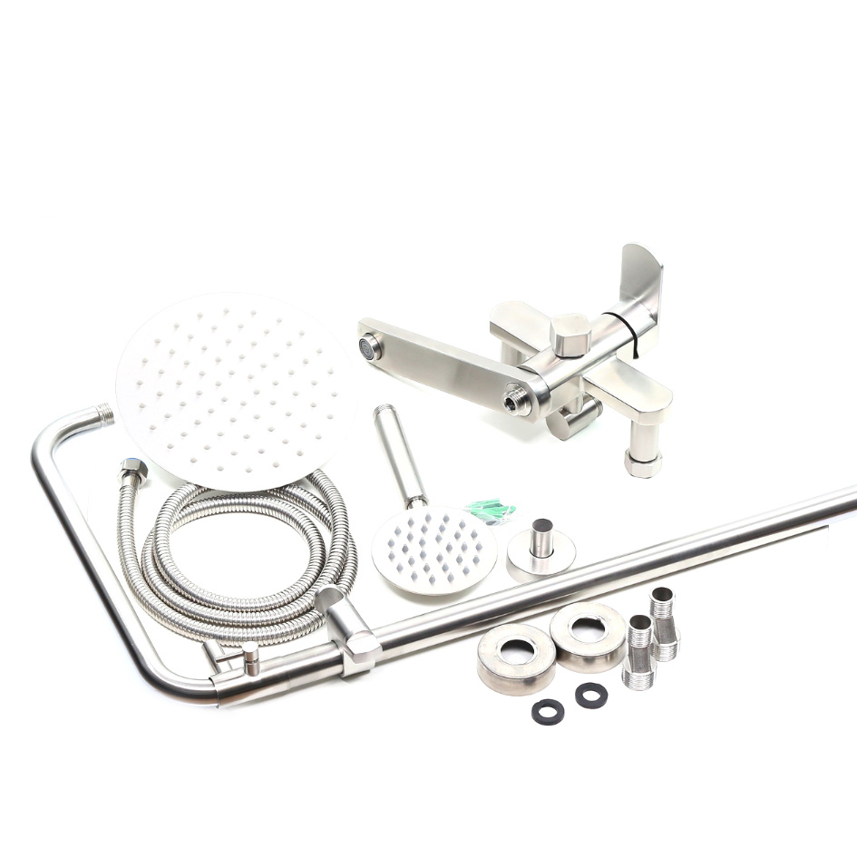 Душевая система MELANA-610307 Stello нерж.сталь, с тропическим душем, лейкой и смесителем