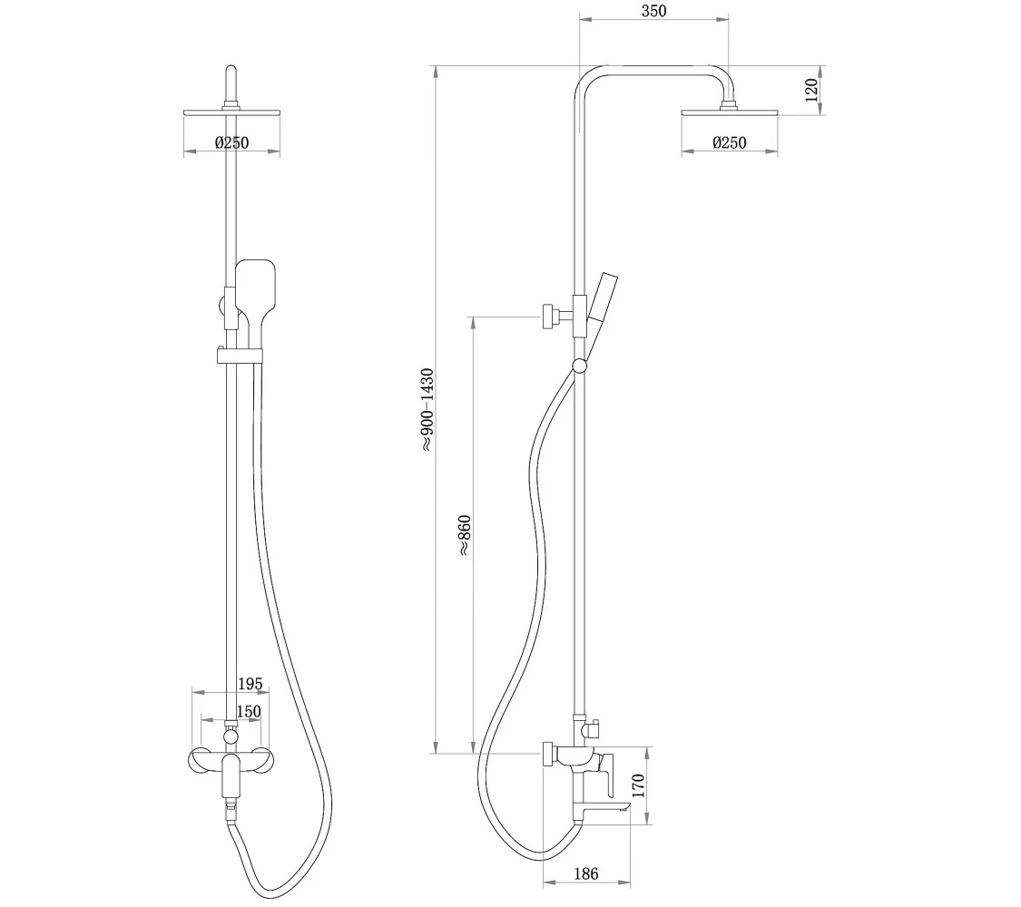 Душевая стойка ABBER Weiss Insel AF8016BL с изливом, черный матовый