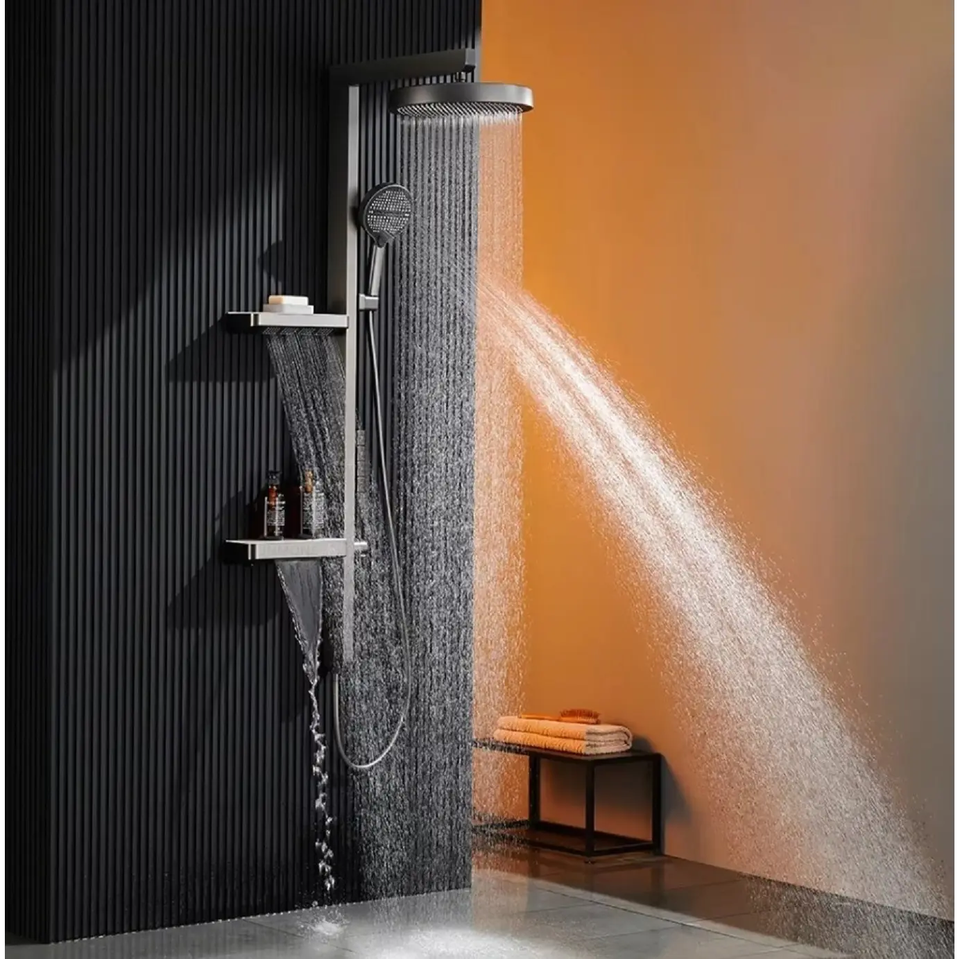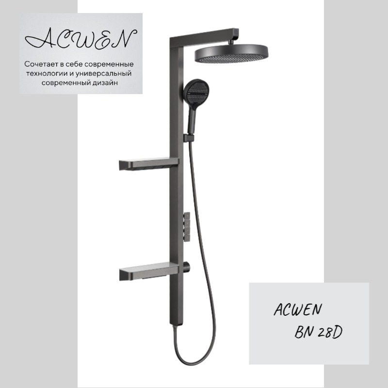 Душевая система от бренда ACWEN— это стильное и функциональное решение для вашей ванной комнаты. Она выполнена в цвете «оружейная сталь», который придаст интерьеру современный и элегантный вид.