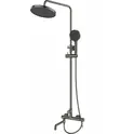 3-х режимная душевая система, телескопическая штанга (1150-1750), поворотный излив. Корпус смесителя - латунь. Надёжный керамический картридж. Излив - нержавеющая сталь (# 304). Верхний душ и душевая лейка из ABS. Душевой шланг: PVD. Длина шланга - 1,5 м.