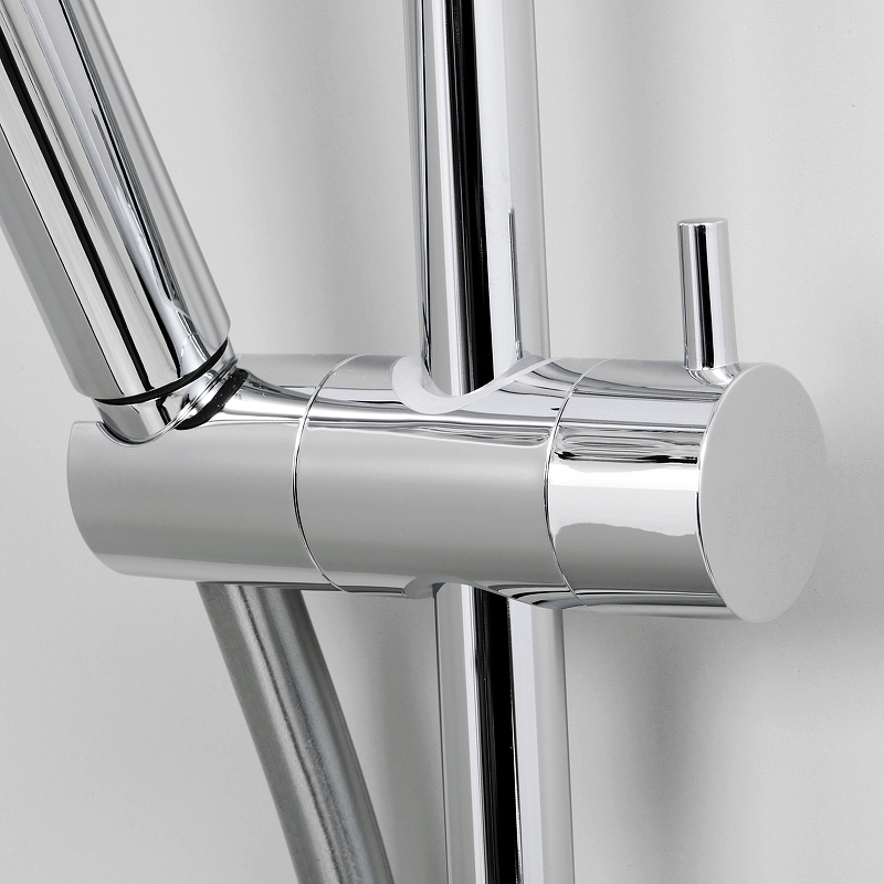 Душевые системы способны любую ванную комнату превратить в личный островок наслаждения. Именно это необходимо современному человеку, живущему в стремительном ритме мегаполиса. Создайте для себя такое место, в котором Вы с удовольствием сможете восстановить энергию, чтобы двигаться дальше!Держатель лейкиДержатель с изменяющимся углом поворота лейки 180 градусов. Держатель можно поднять или опустить на любую удобную для Вас высоту, для этого необходимо нажать кнопку и, удерживая, перемещать по стойке.