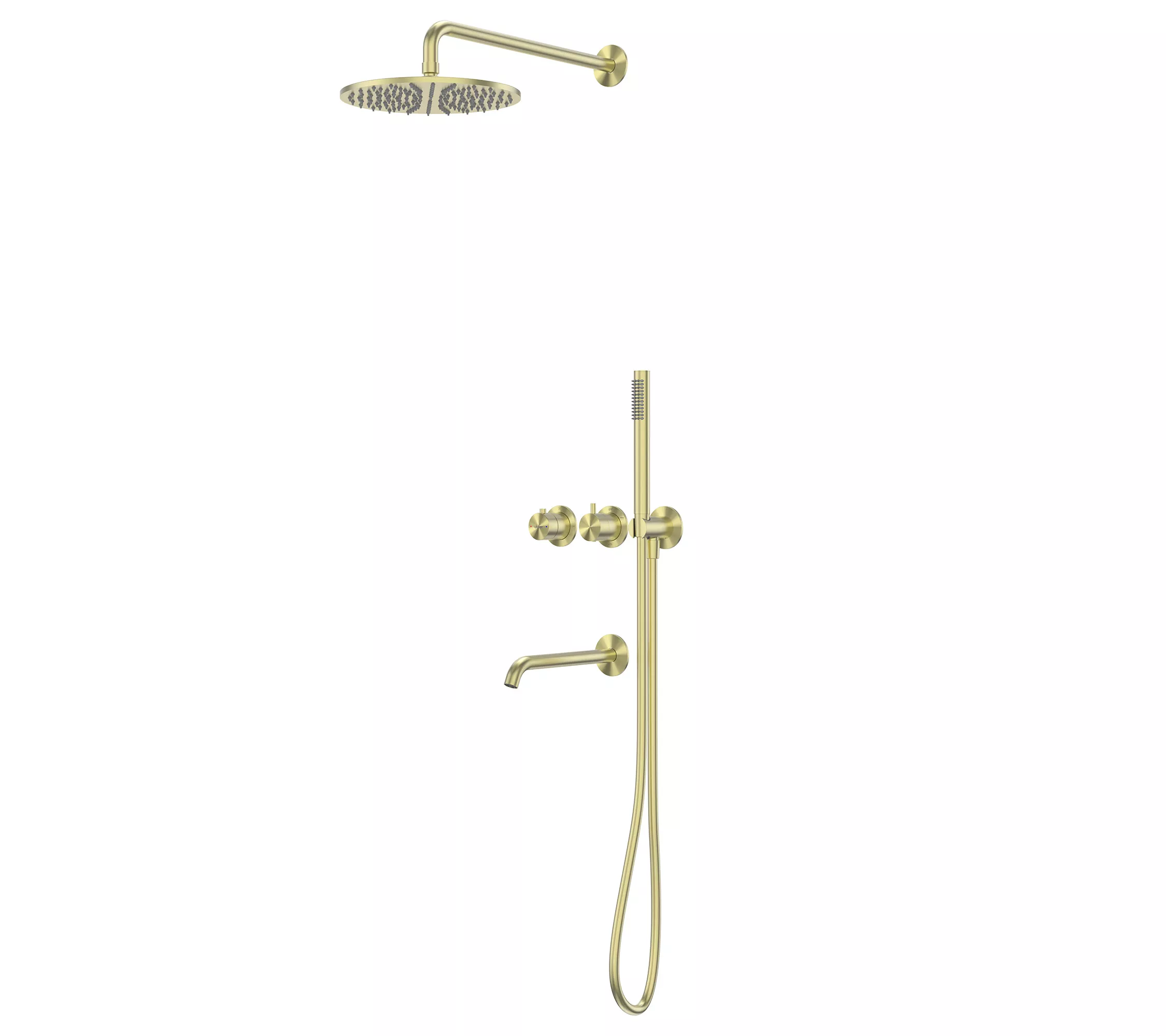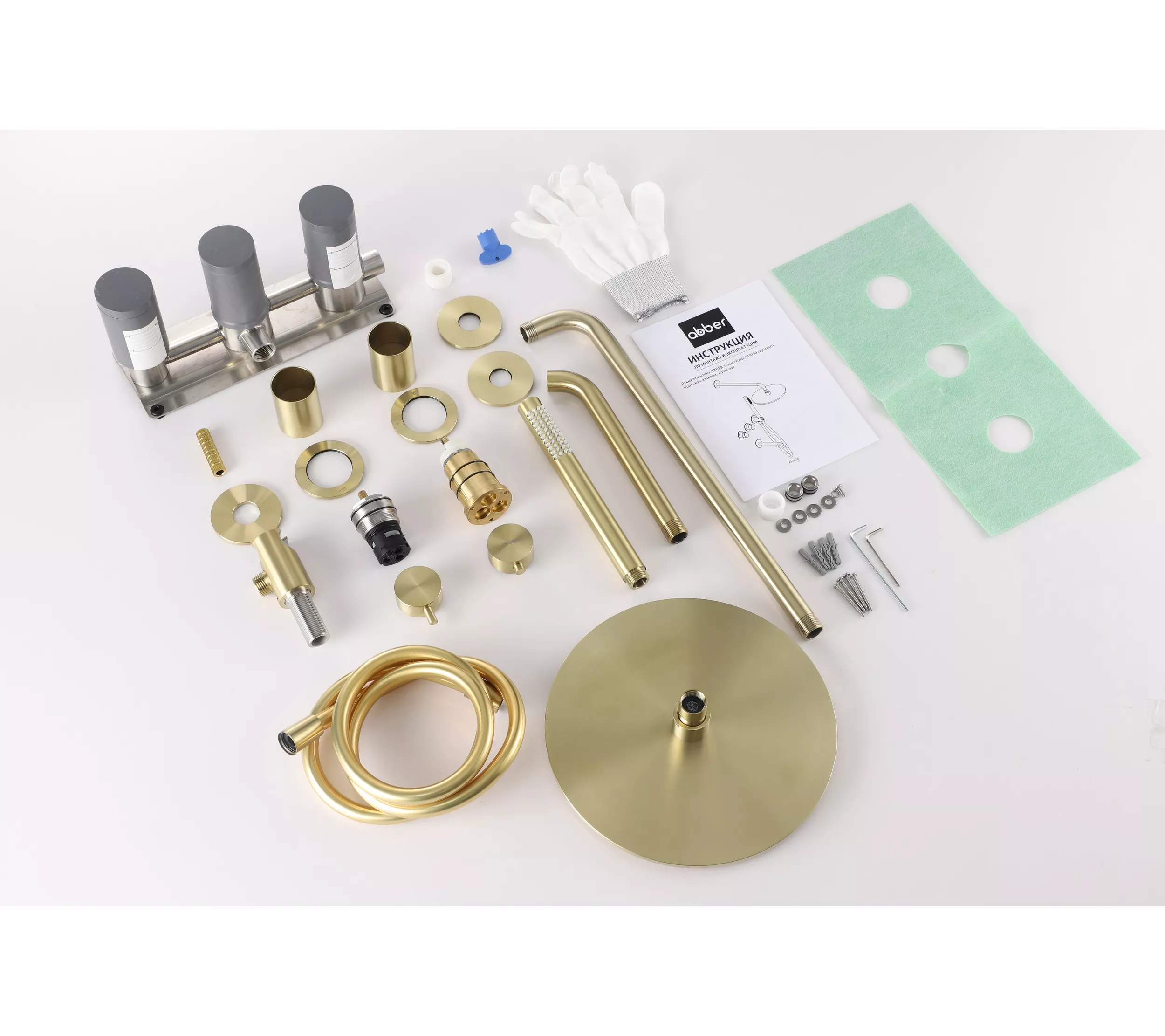 Душевая система ABBER Wasser Kreis 316 AF8150BG скрытого монтажа с изливом, термостат, золото брашированное