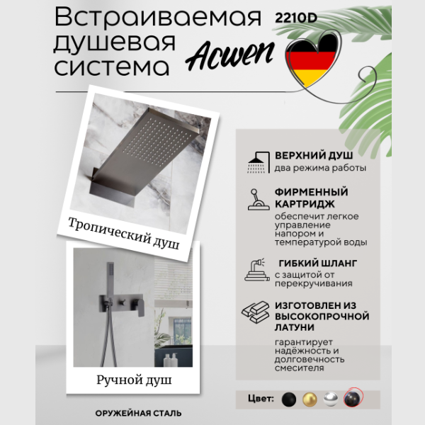 Душевая система ACWEN 2210D встраиваемая , оружейная сталь