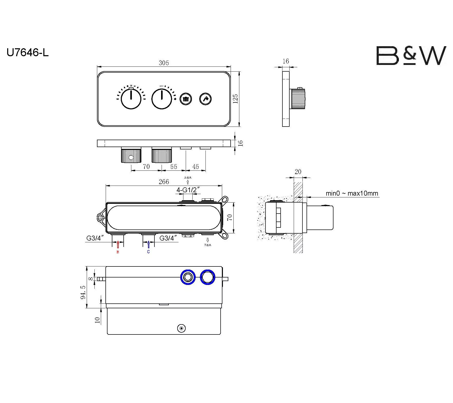 • Выход для ручного душа 1/2"