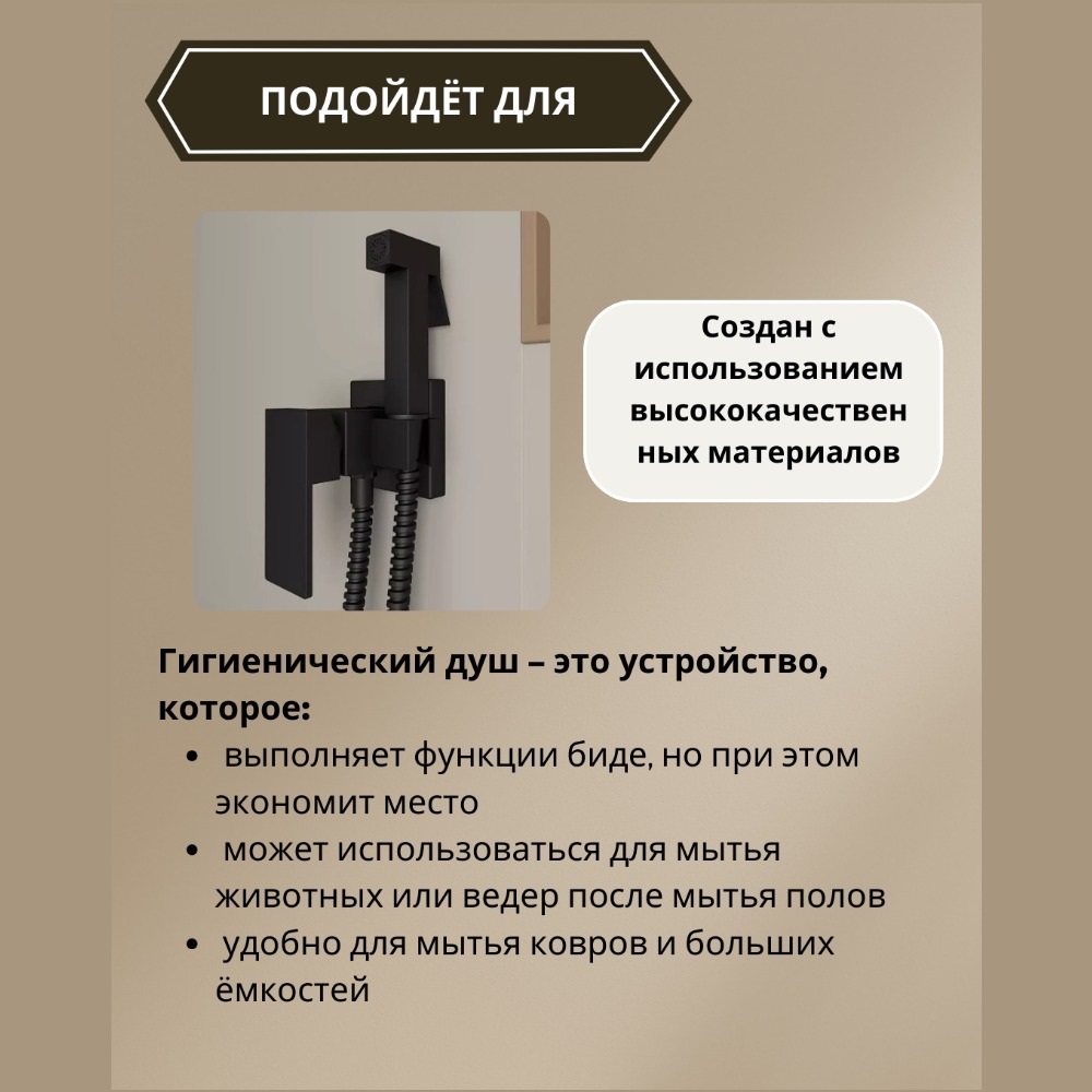 Представляем вашему вниманию функциональный и стильный гигиенический душ со смесителем для вашей ванной комнаты и туалета! Который можно использовать как гигиенический душ для унитаза, смеситель с гигиеническим душем, а также удобно помыть лапы собаке или лоток кота.