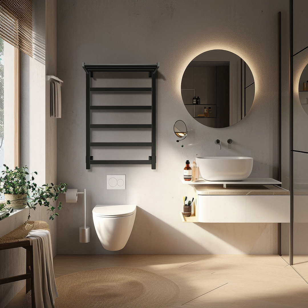 Полотенцесушитель Secado Корсико 1 СП , с полочкой, электрический L/R черный матовый