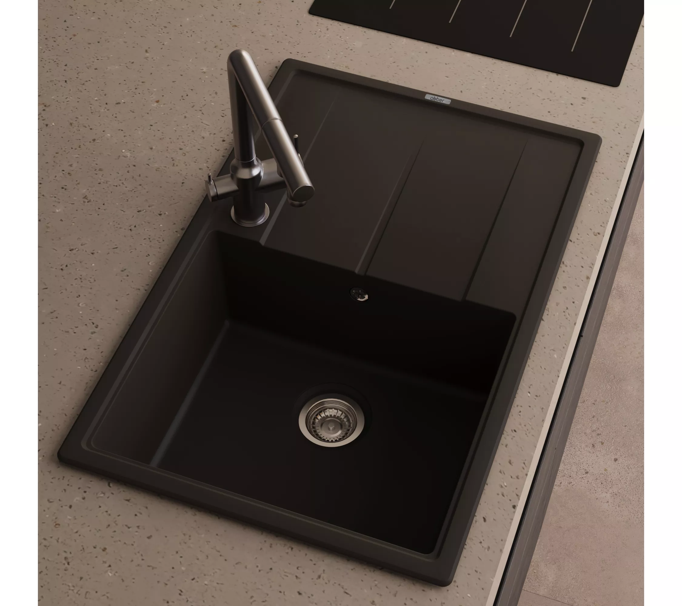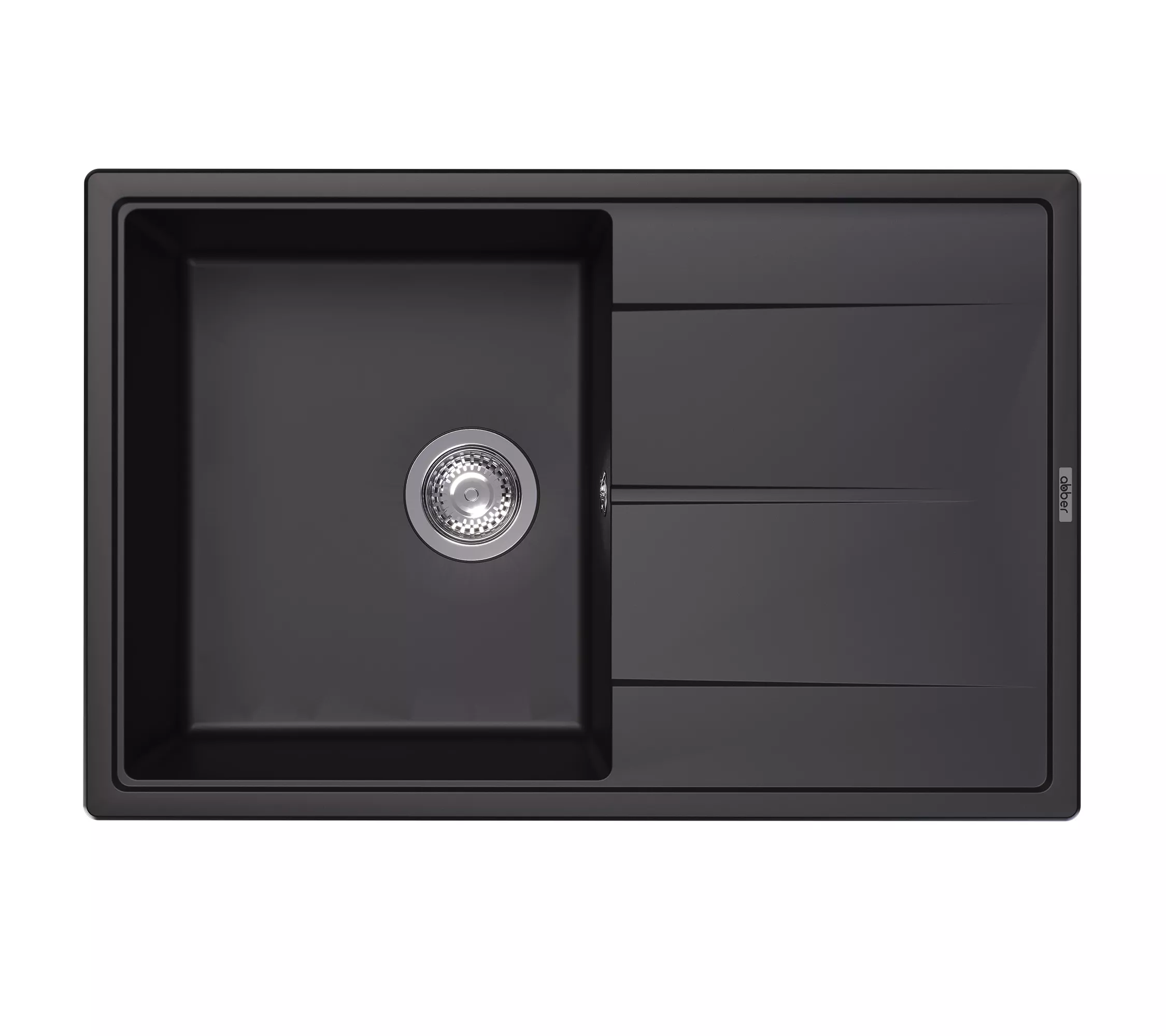 Кухонные мойки ABBER из кварцевого композита — это долговечность, надежность и простота в уходе. Черная кварцевая мойка 78х51х21,7см легко подойдет к любому дизайну кухни. Вы можете выбрать мойку с крылом или без. Чтобы очистить мойку, не нужно использовать какие-то специализированные средства. Кварцевая мойка не боится повреждений, не окрашиваются продуктами. Как натуральный камень, но лучше и дешевле!