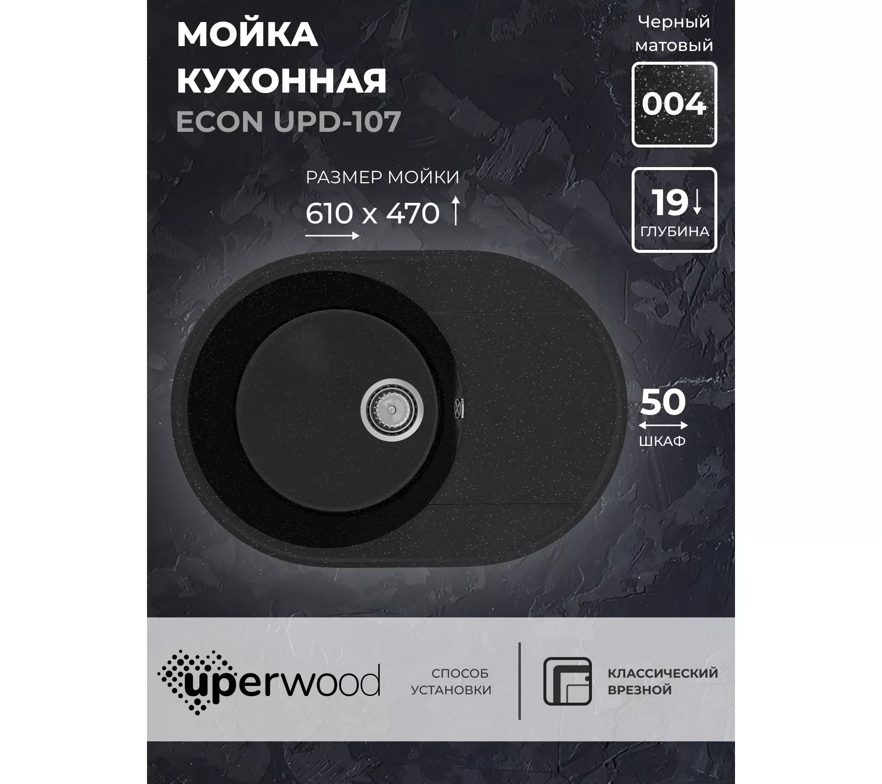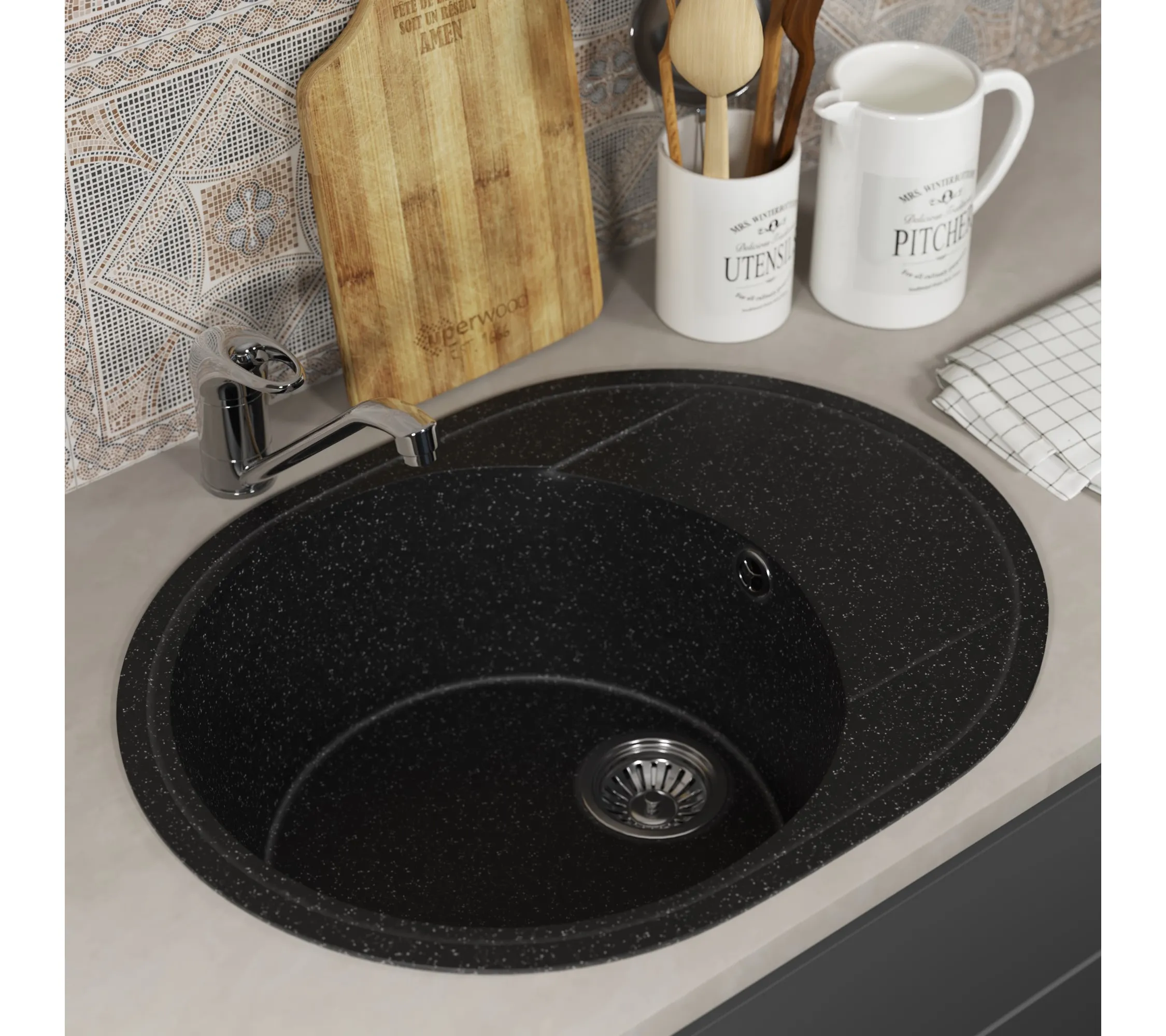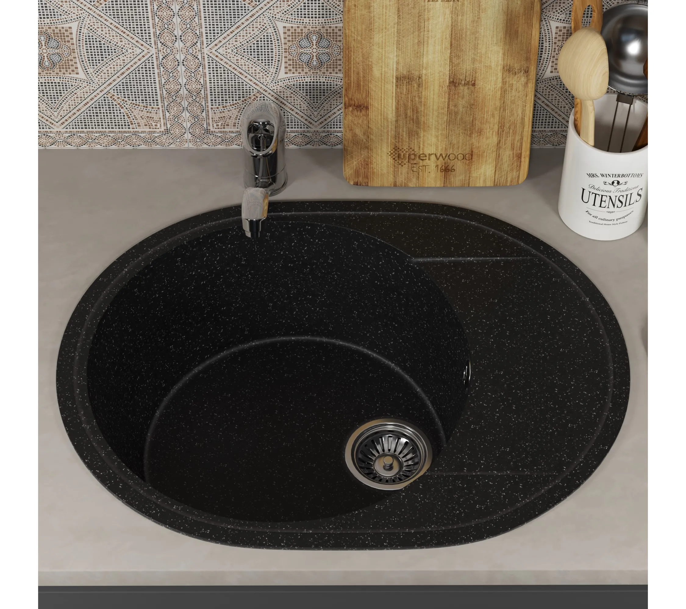 Кухонная мойка из искусственного камня Uperwood ECON UPD-107-004, овальная, черная матовая