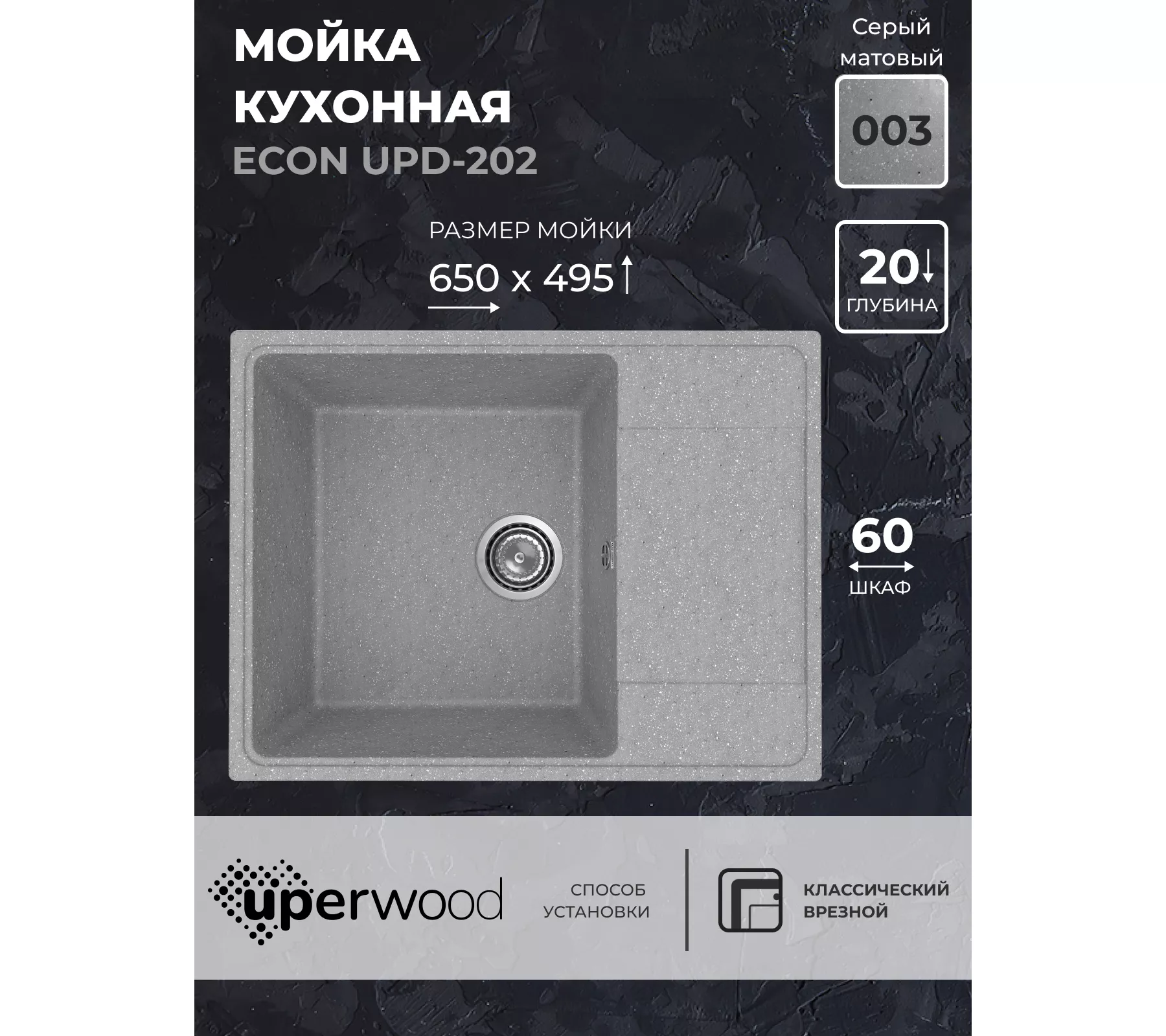 Заводская гарантия составляет 1 год, а срок службы данной мойки, при соблюдении основных правил ухода за ней, составляет более 10 лет. Кухонные мойки Uperwood ECON из искусственного камня с увеличенной чашей отличаются своей практичностью, легкостью в уходе и увеличенным сроком службы по сравнению с керамикой и нержавеющей сталью.