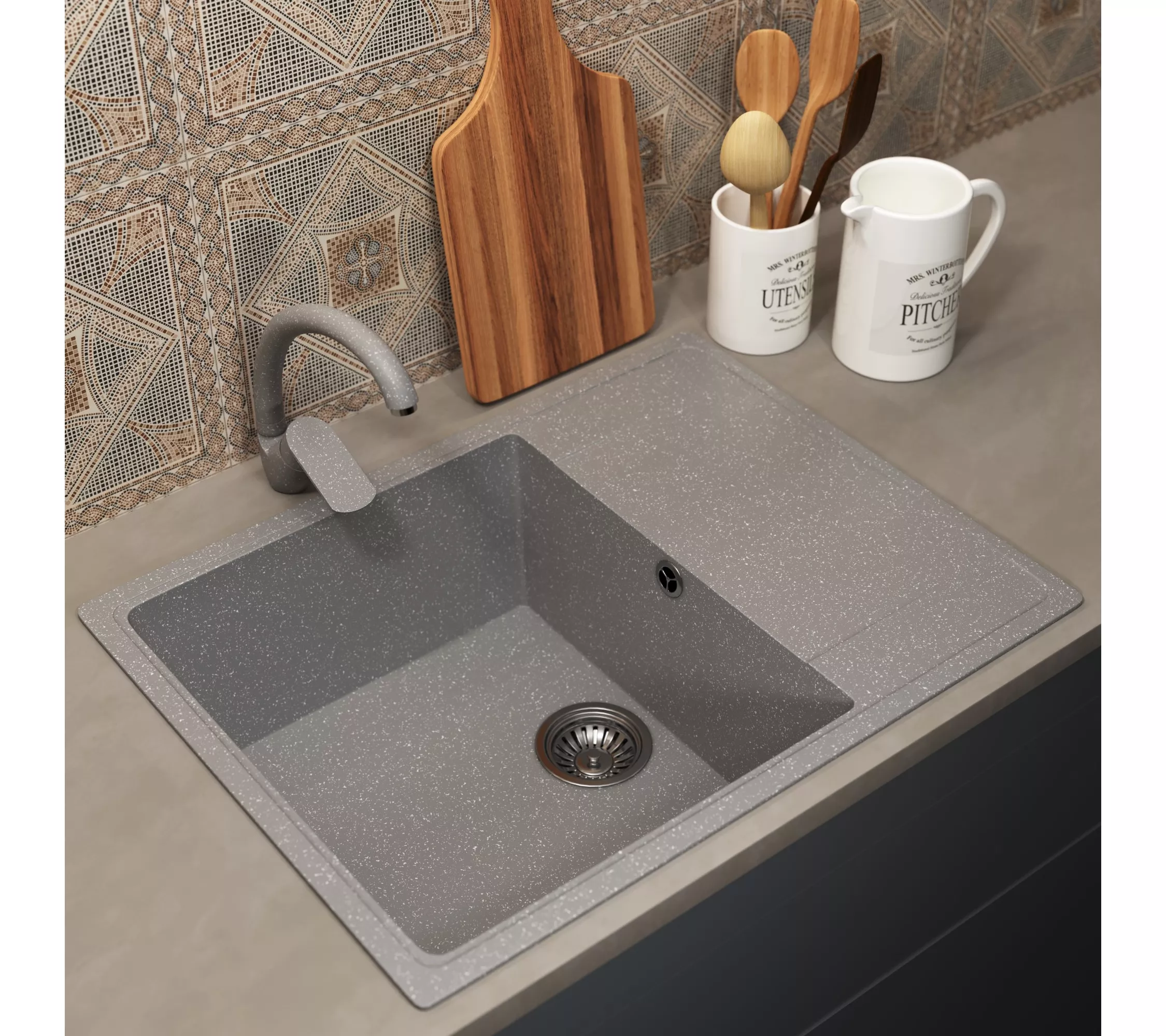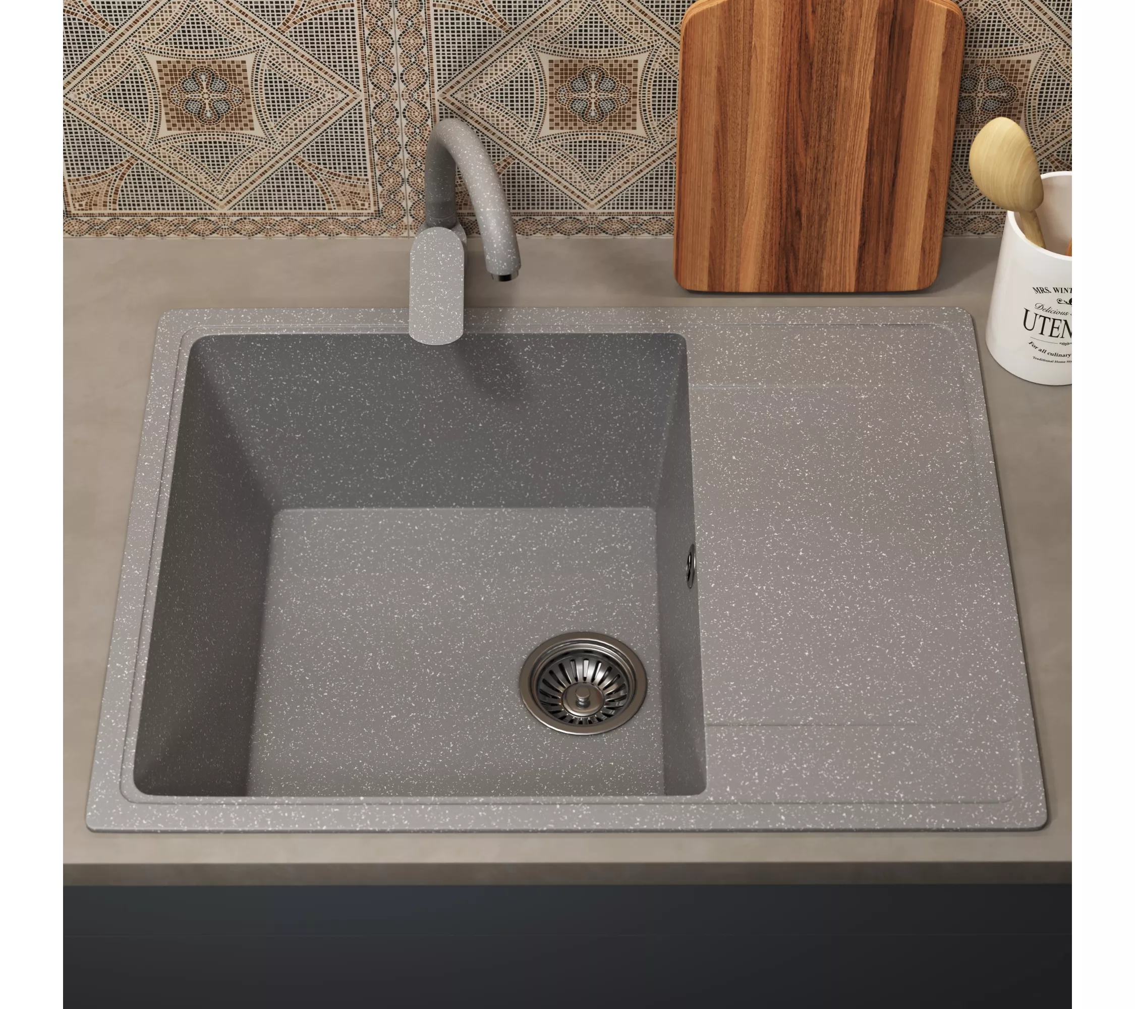 Уникальная фактура камня смотрится благородно, вписывается в любой интерьер и делает его утонченным. Мойка гладкая и приятная на ощупь, матовое покрытие. При эксплуатации не издает неприятного шума и грохота. На выбор покупателя предлагается 4 стандартных цвета для каждой модели мойки: белый, серый, бежевый и черный.